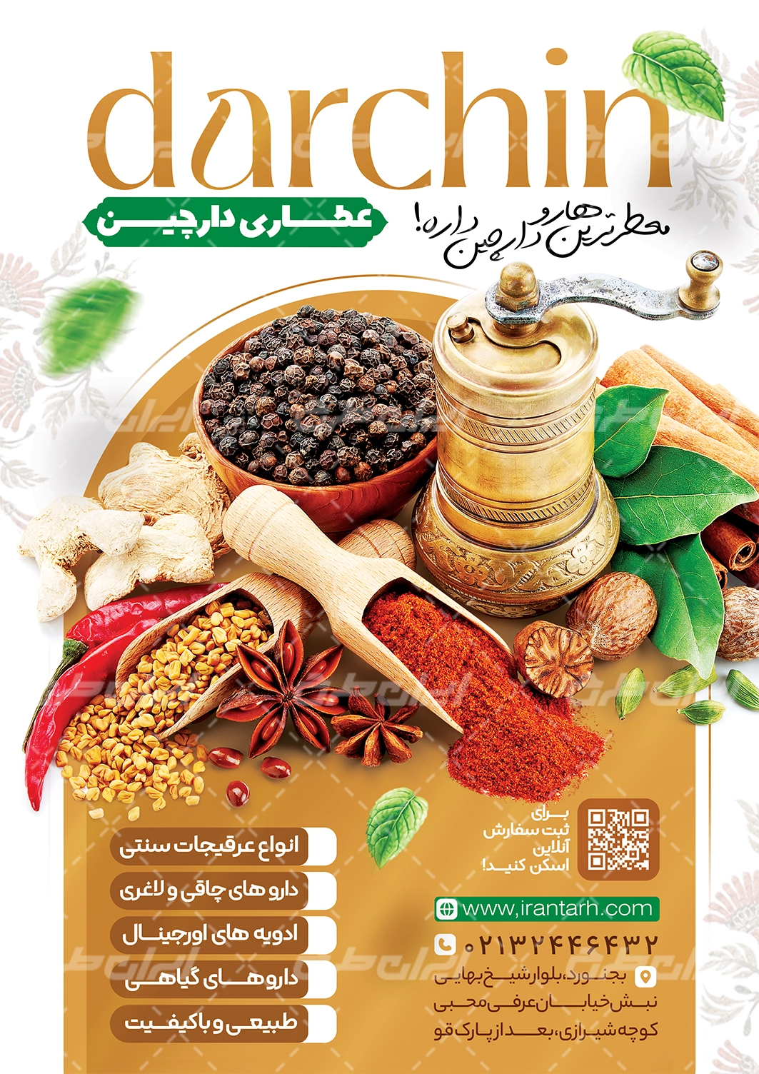 - استفاده مناسب از عکس با کیفیت دارو گیاهی و ادویه در طرح تراکت عطاری