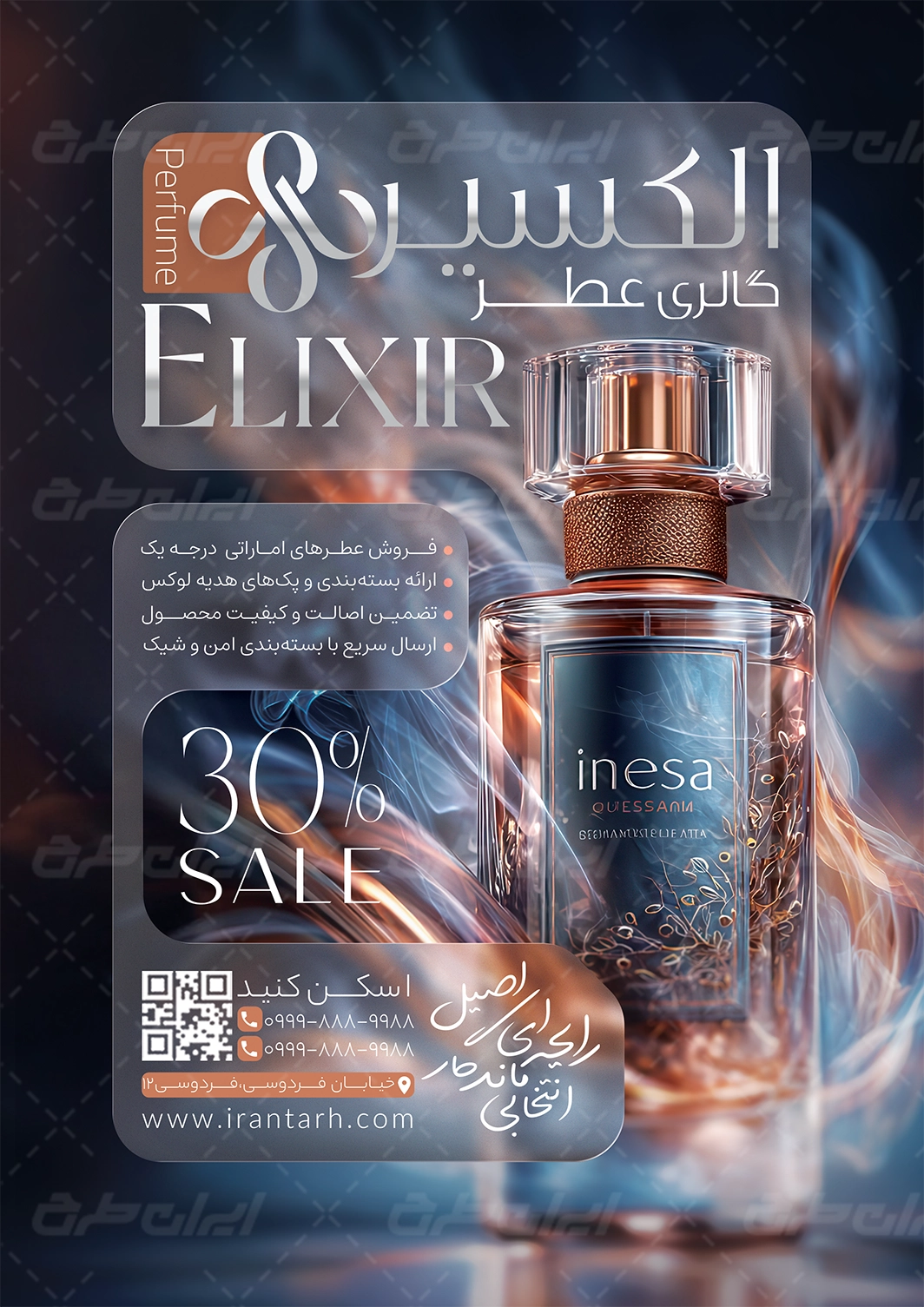 - استفاده مناسب از عکس باکیفیت شیشه عطر و ادکلن در طرح تراکت فروشگاه عطر