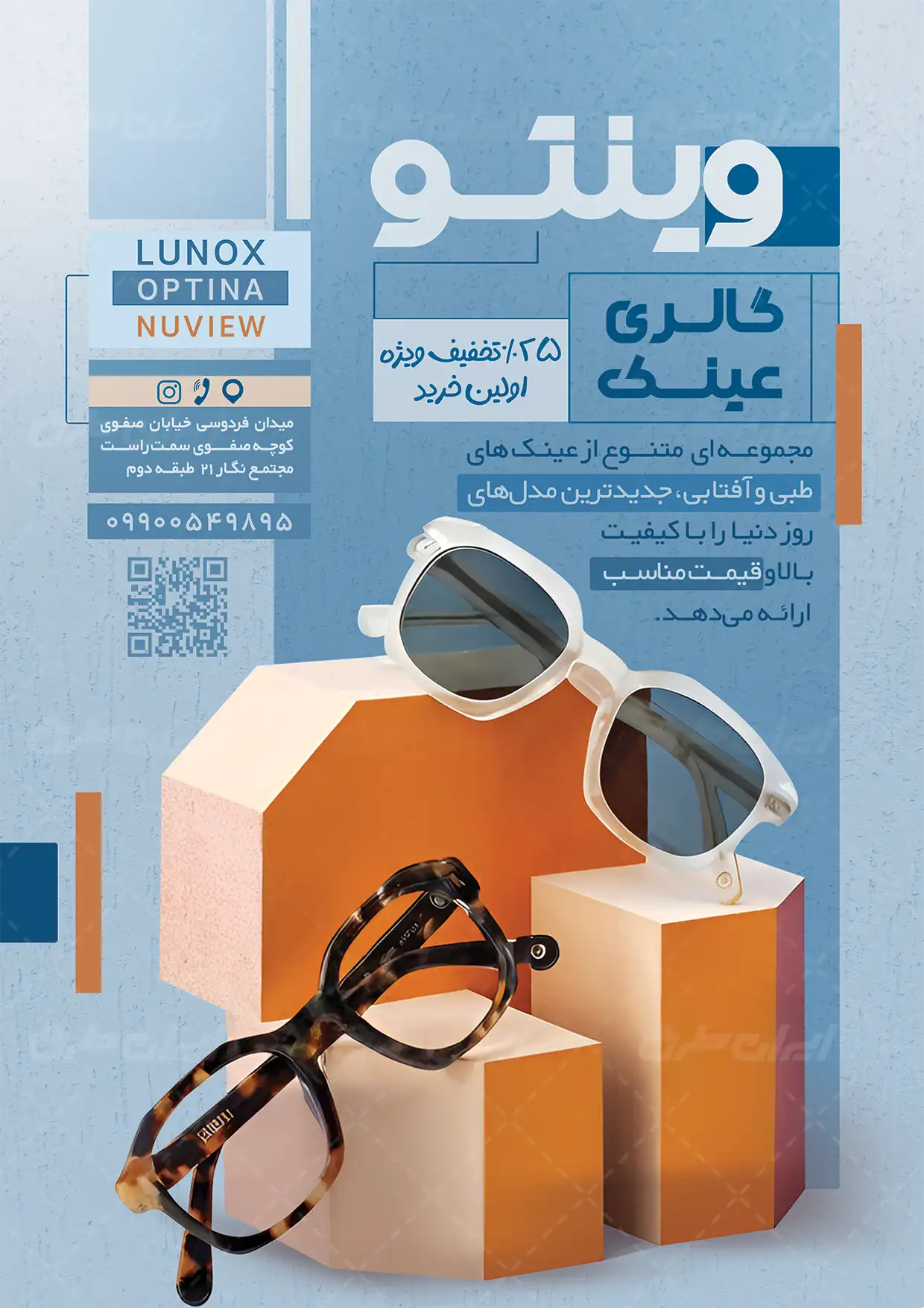 - طراحی ساده و کاربردی تراکت گالری عینک