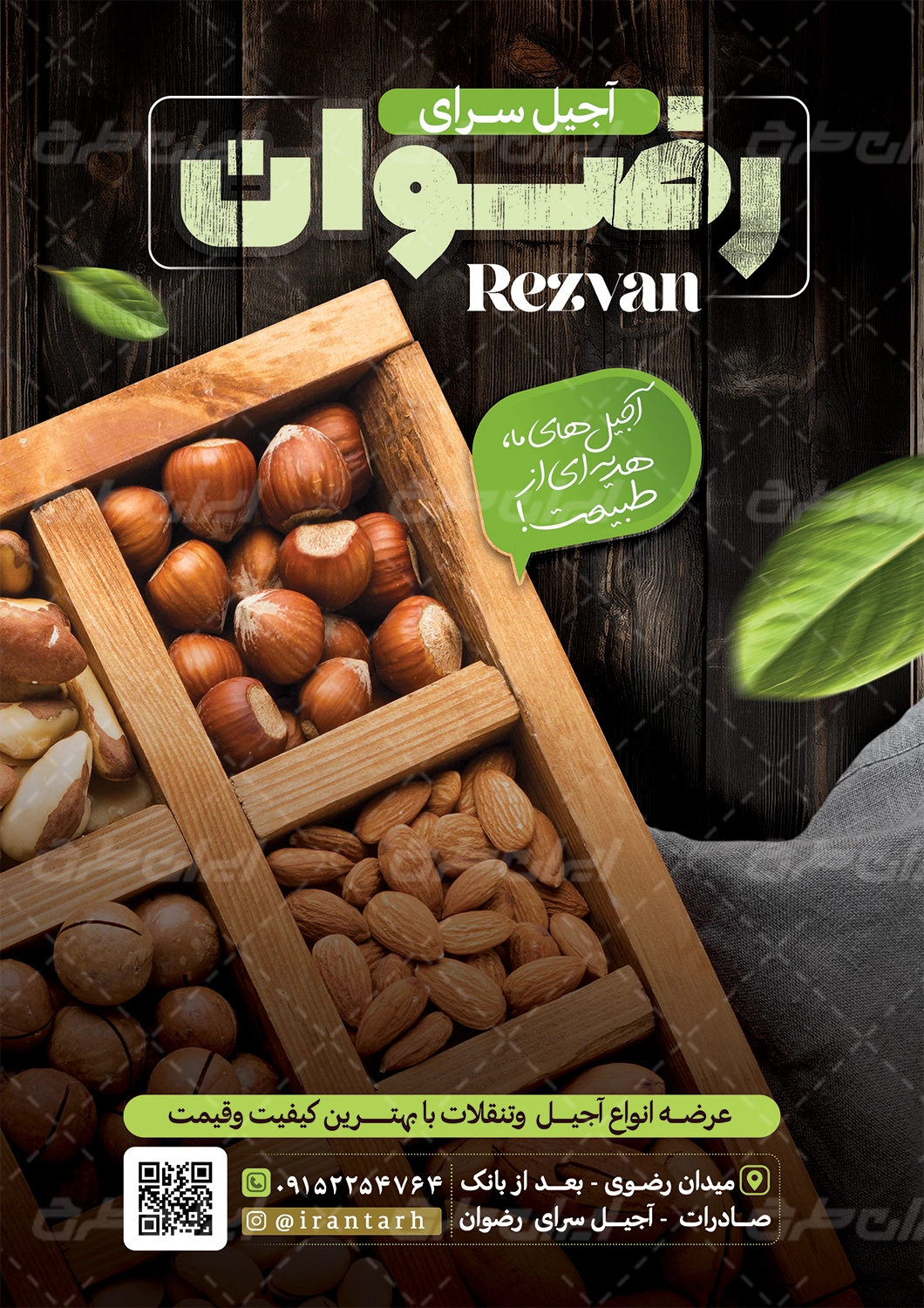 طرح تراکت فروشگاه آجیل و خشکبار شامل: