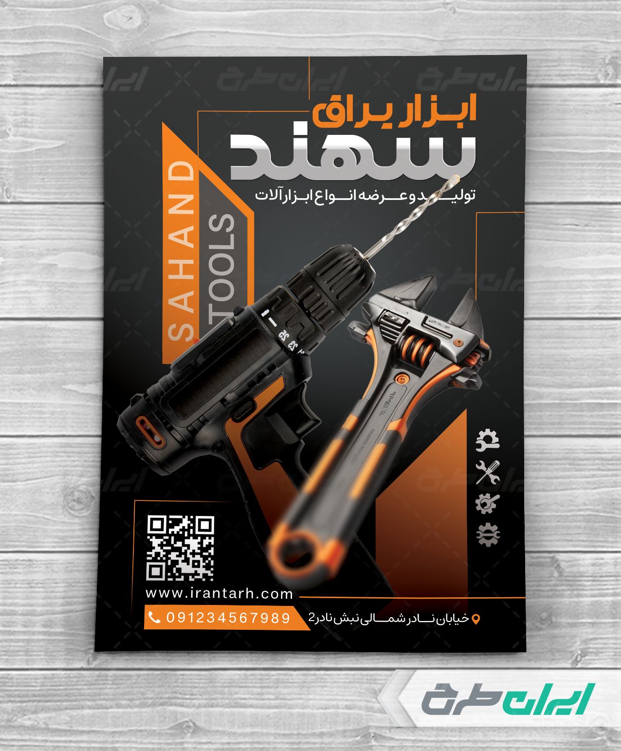 - استفاده از عکس باکیفیت ابزار یراق که مناسب با طرح تراکت لایه باز ابزار فروشی