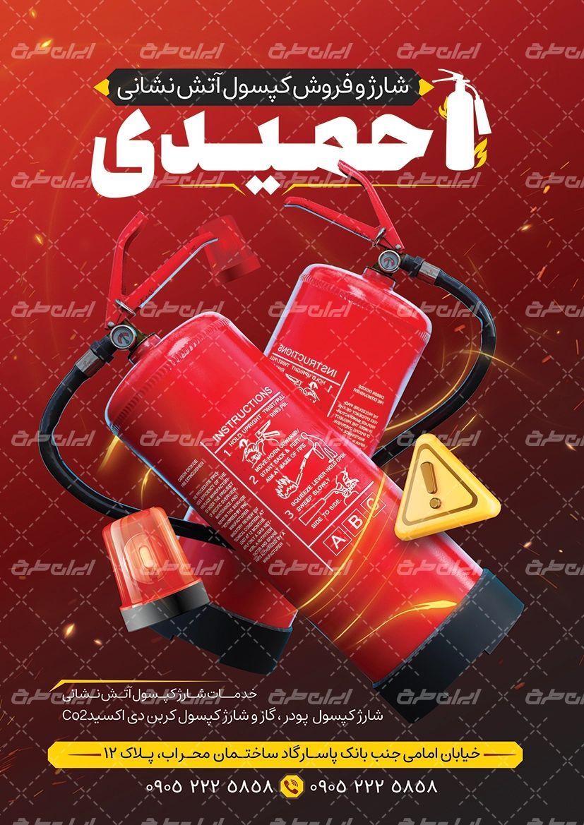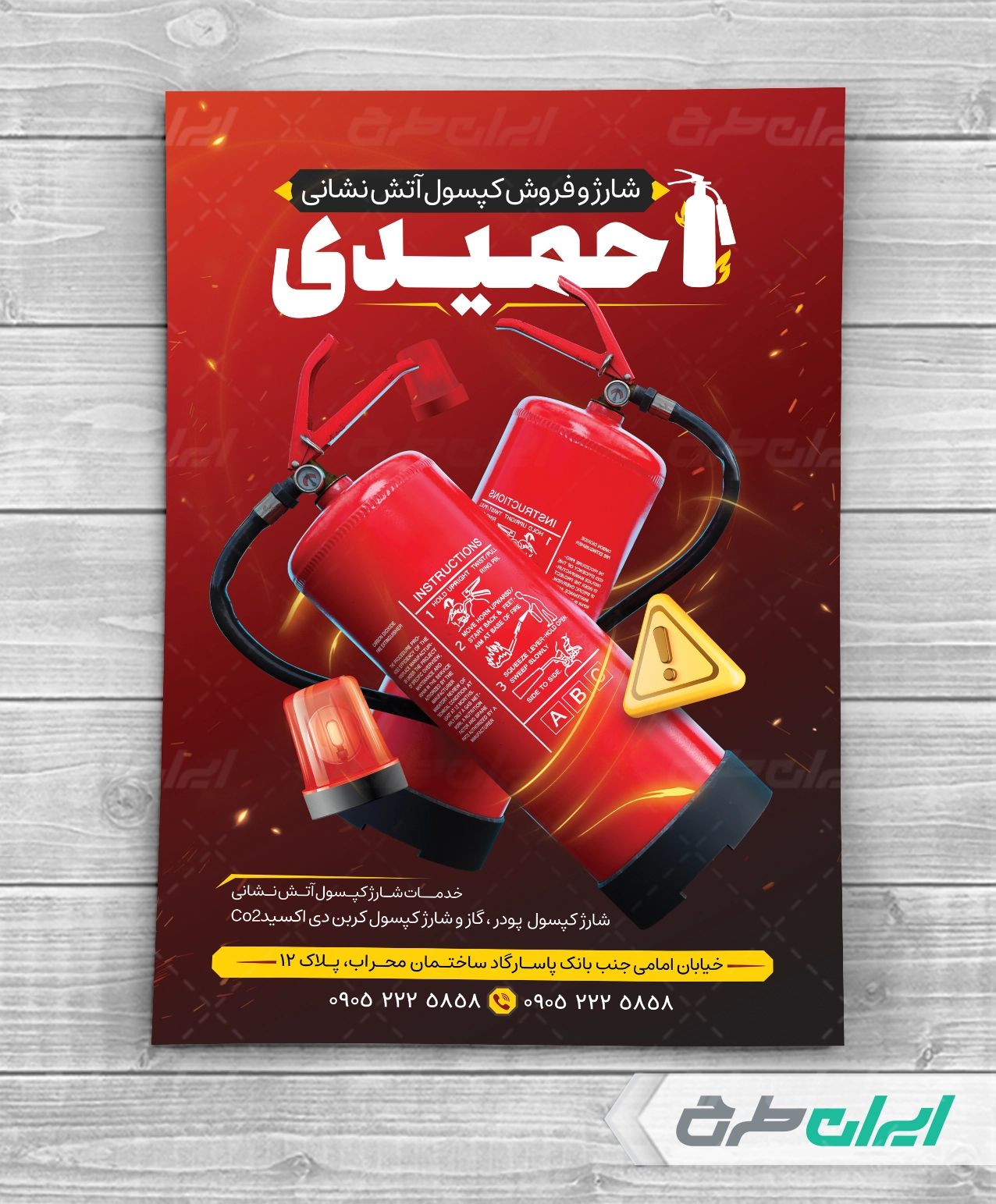 طرح لایه باز تراکت فروشگاه تجهیزات ایمنی آتش نشانی