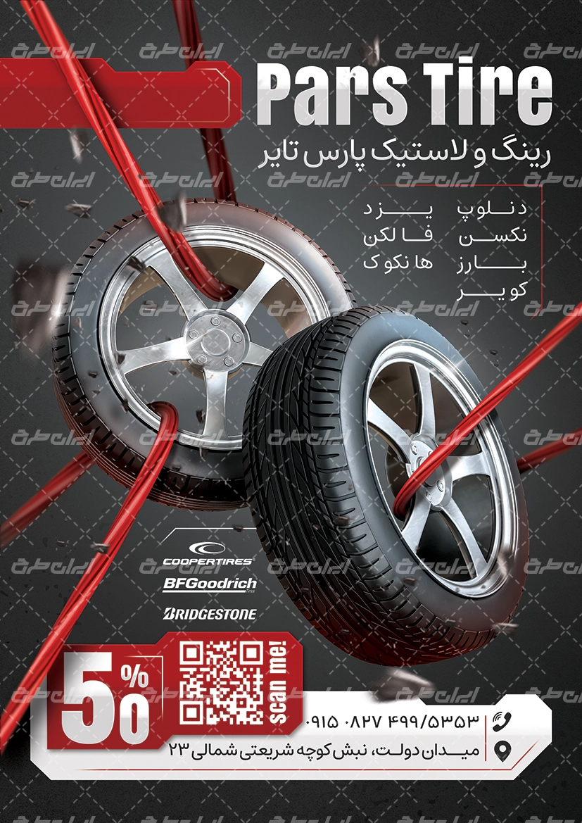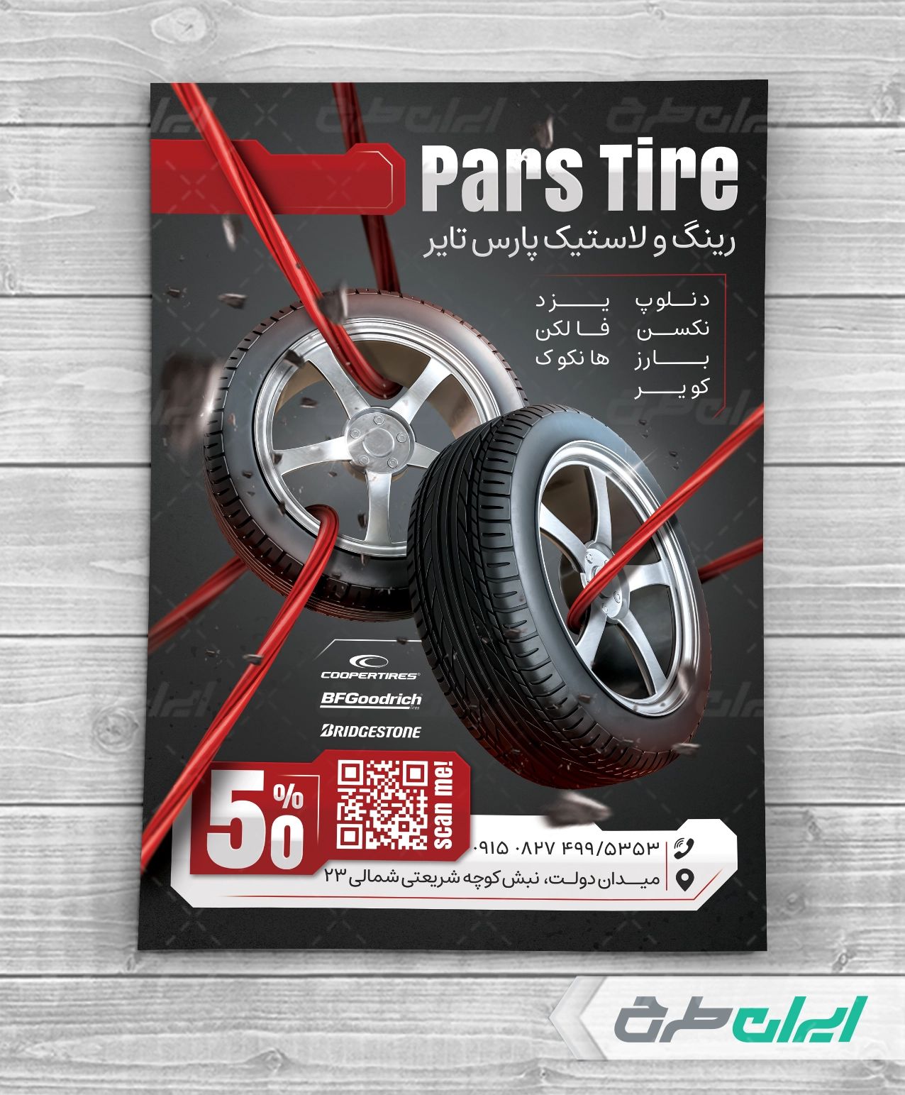 طرح لایه باز تراکت فروشگاه رینگ و لاستیک