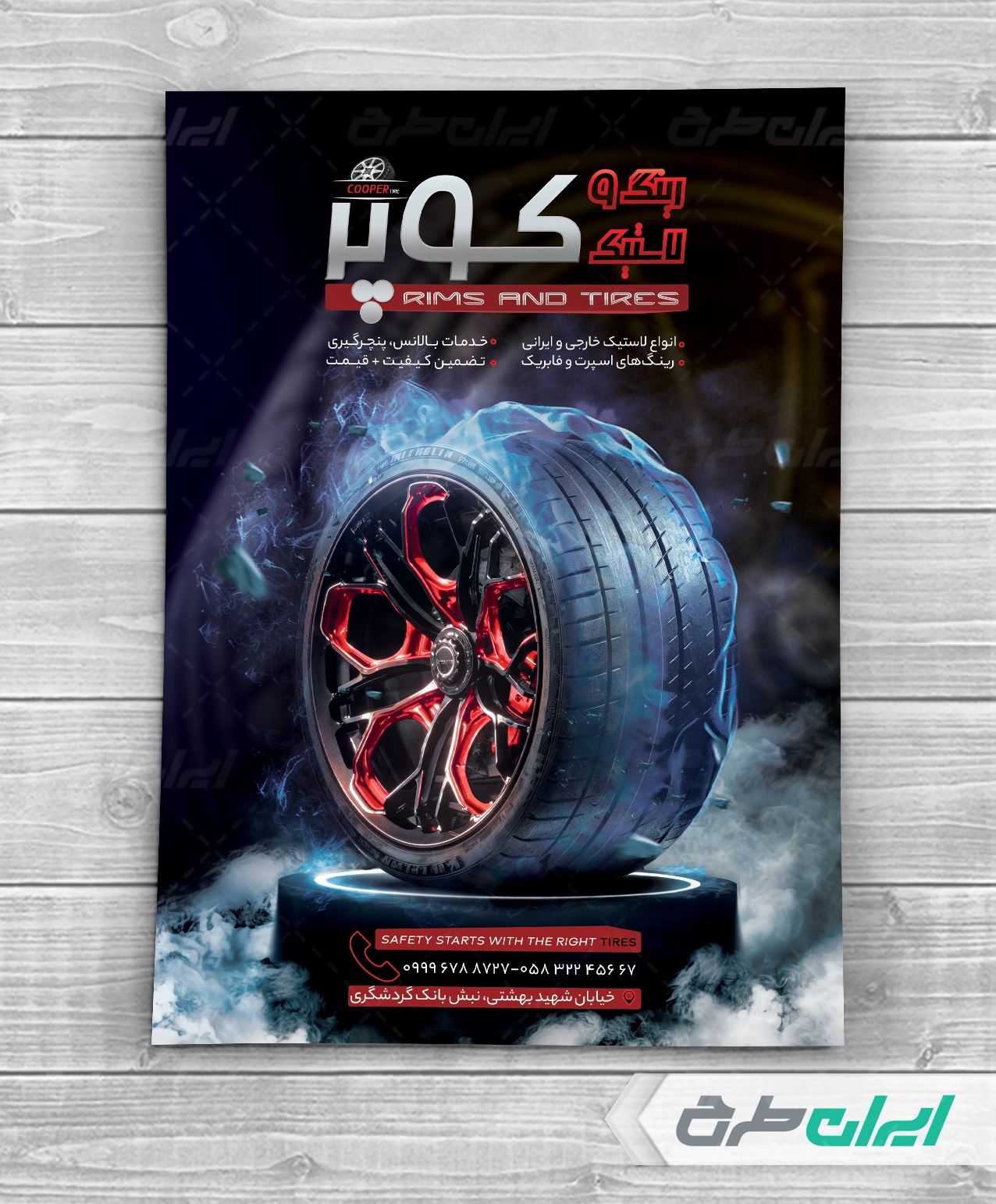 طرح لایه باز تراکت فروشگاه رینگ و لاستیک