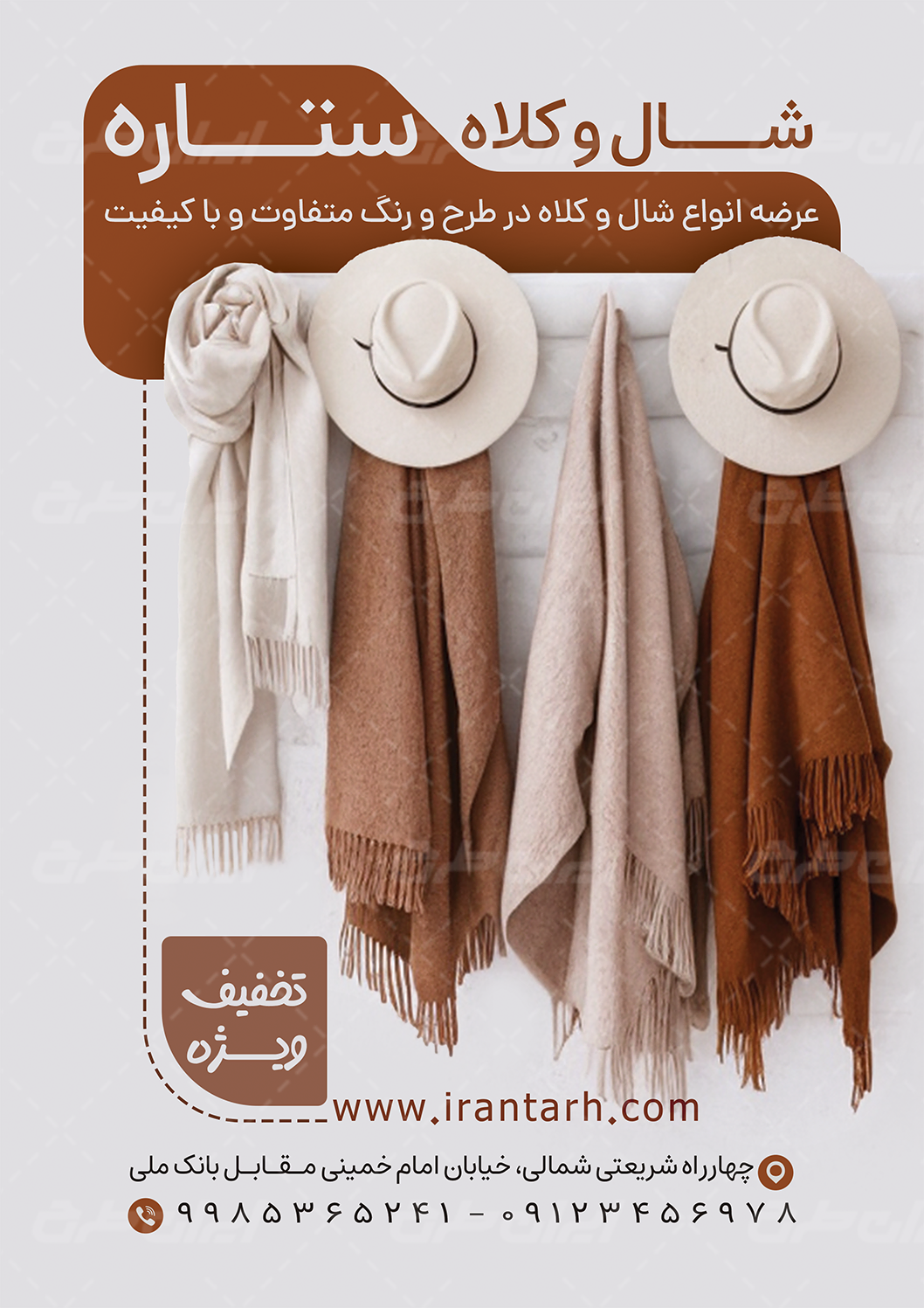 - استفاده مناسب از عکس شال و کلاه در طراحی تراکت فروشگاه شال و کلاه