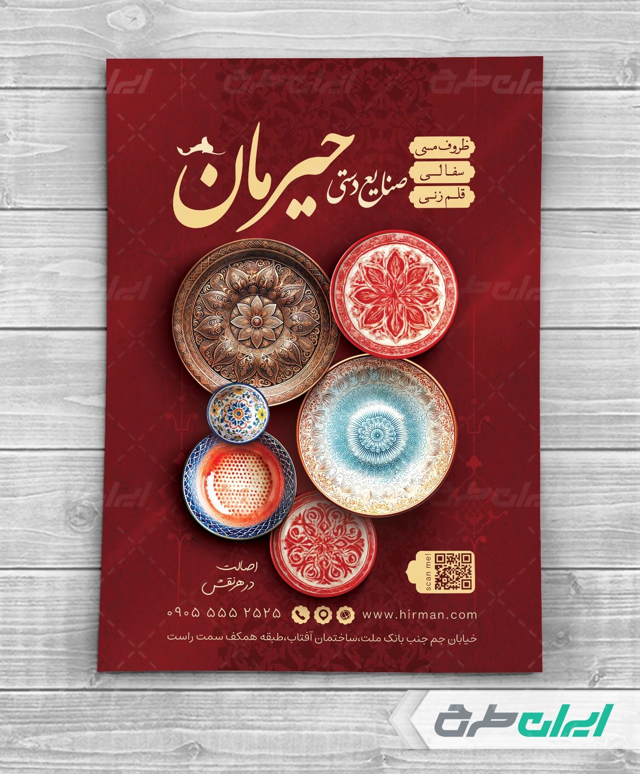 طرح لایه باز تراکت فروشگاه ظروف مسی