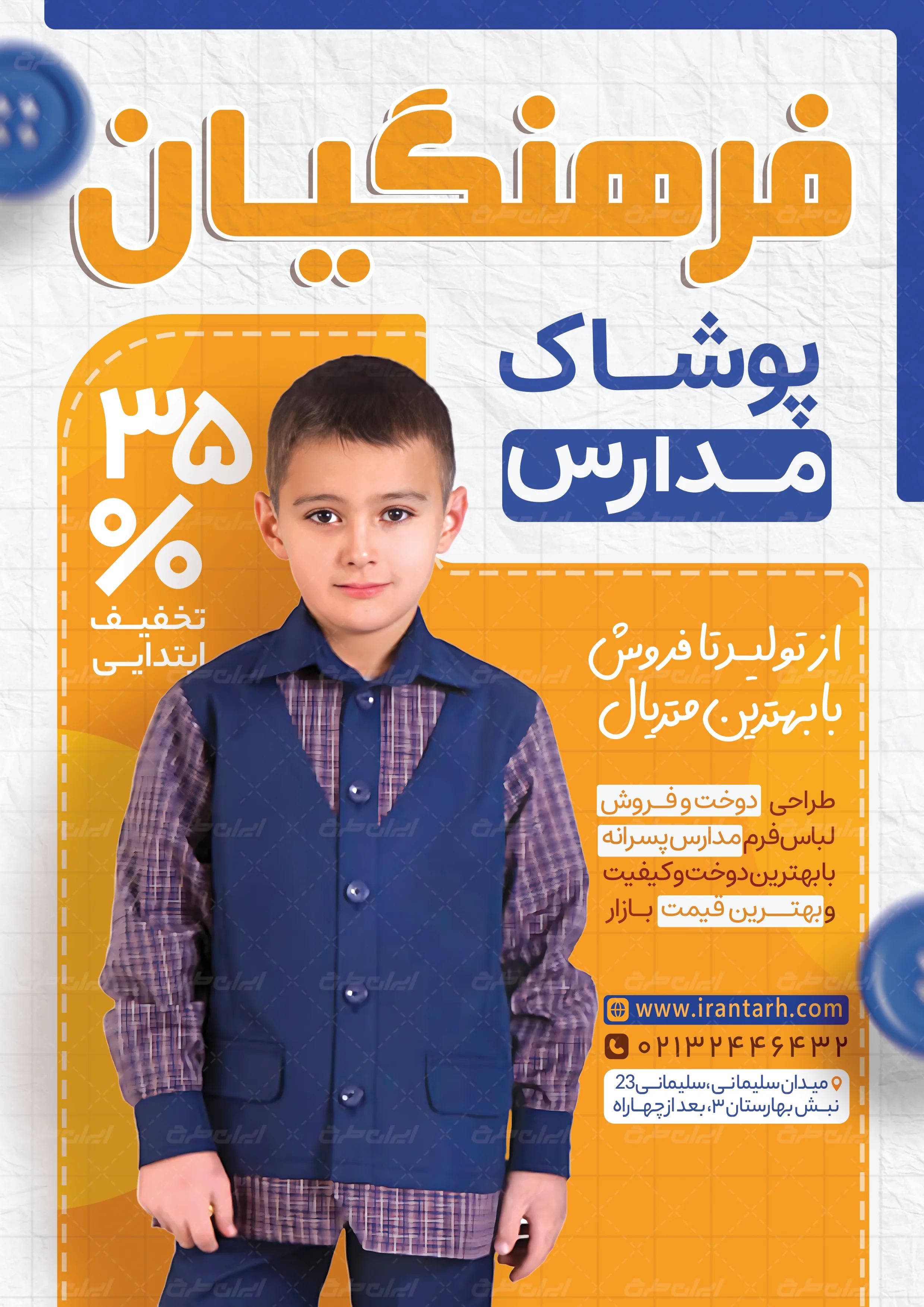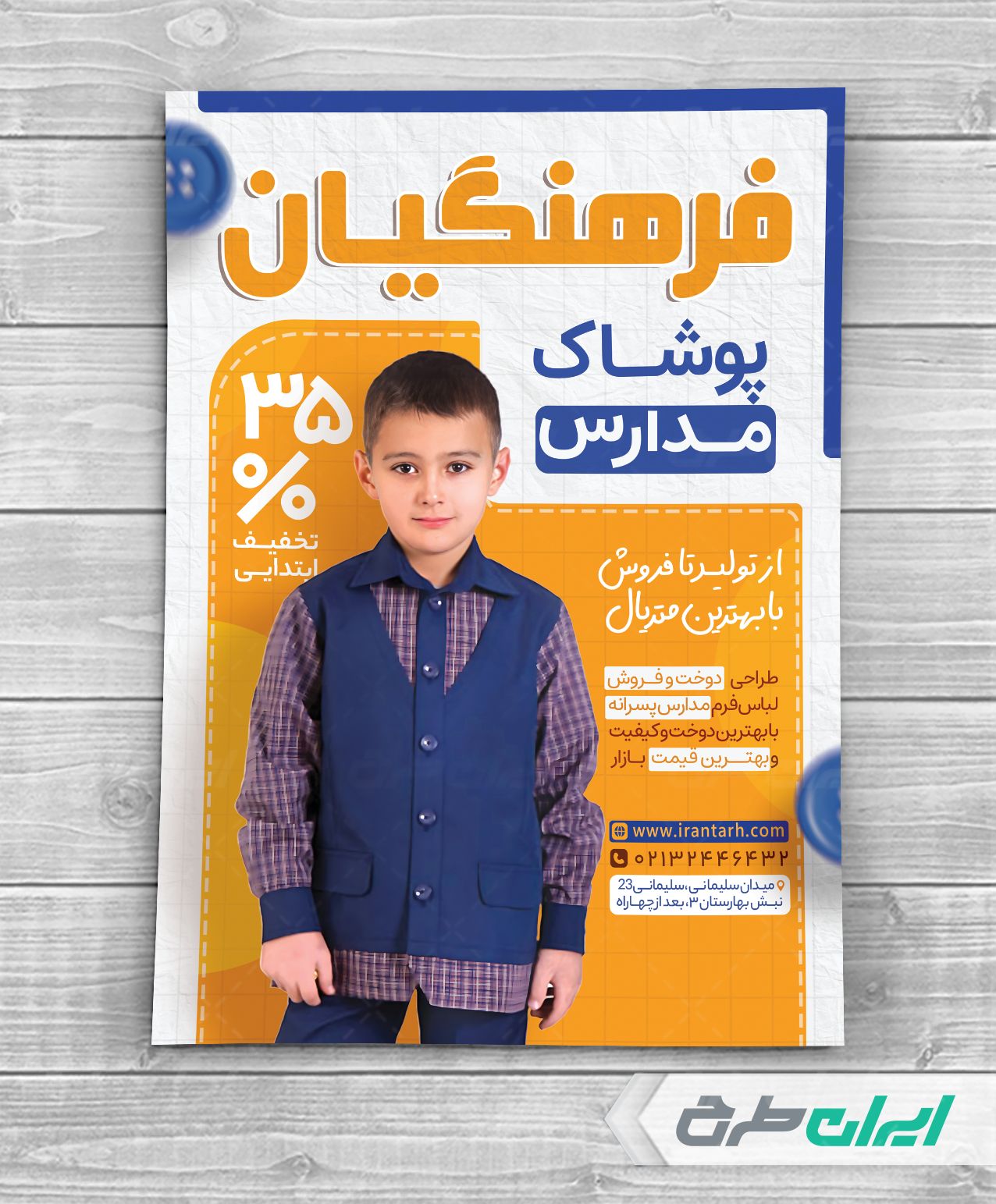 تیم ایران طرح طرح تراکت فروشگاه پوشاک مدارس را برای بازاریابی و تبلیغات گسترده تر این شغل طراحی و در دسترس کاربران سایت قرار داده است.