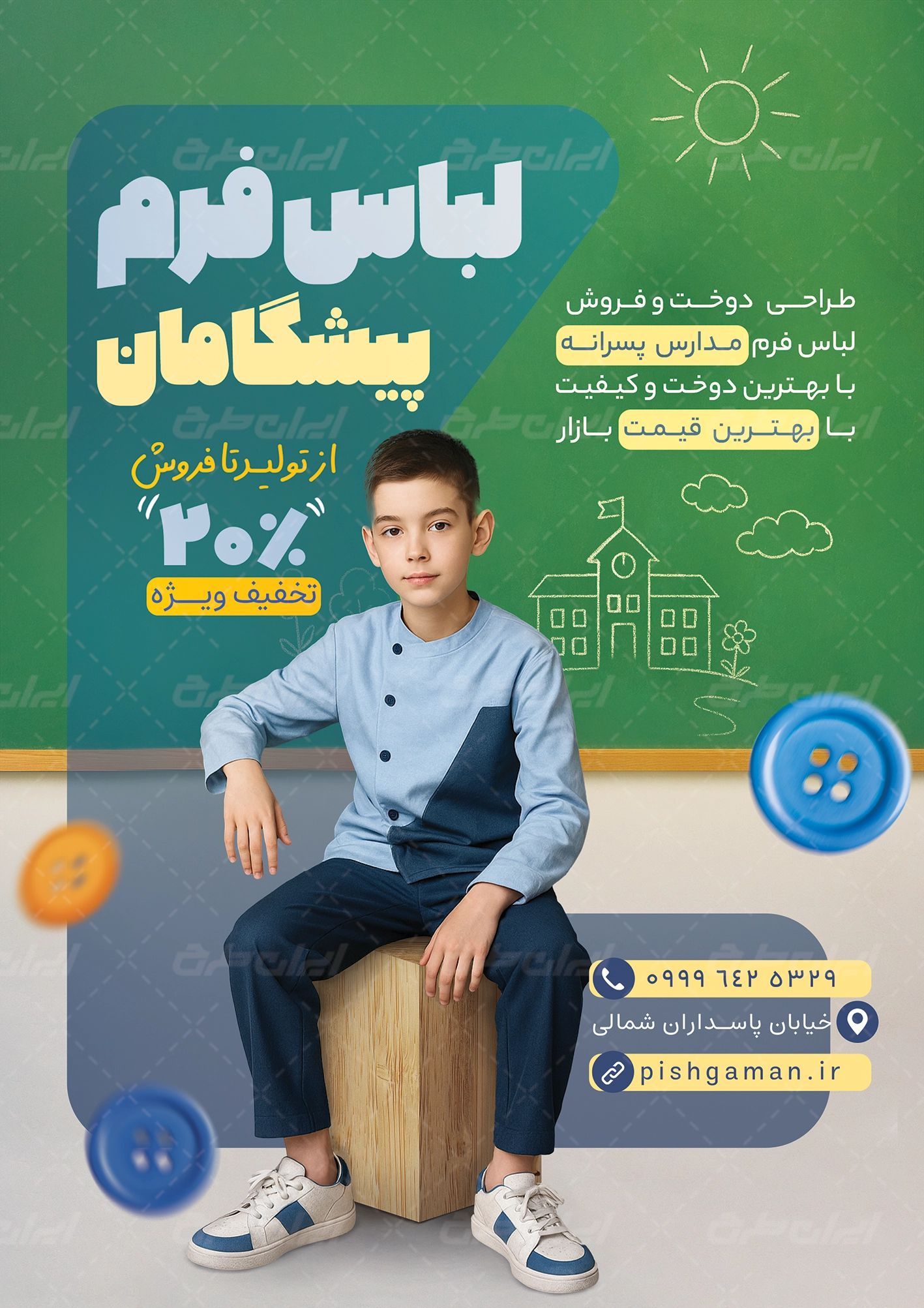 تیم ایران طرح طرح تراکت فروشگاه پوشاک مدارس را برای بازاریابی و تبلیغات گسترده تر این شغل طراحی و در دسترس کاربران سایت قرار داده است.