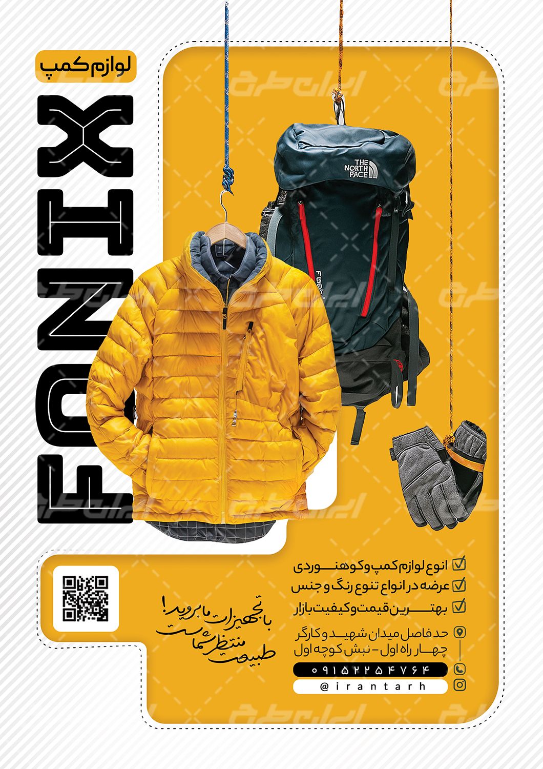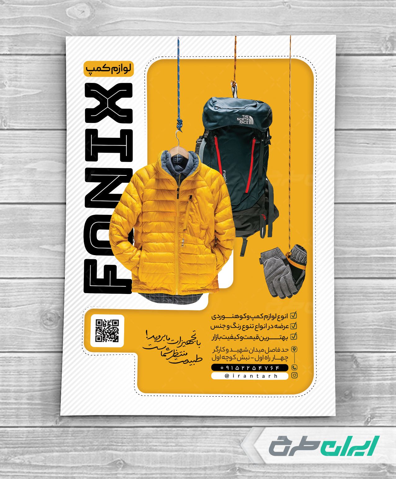 طرح لایه باز تراکت فروشگاه لوازم کمپینگ