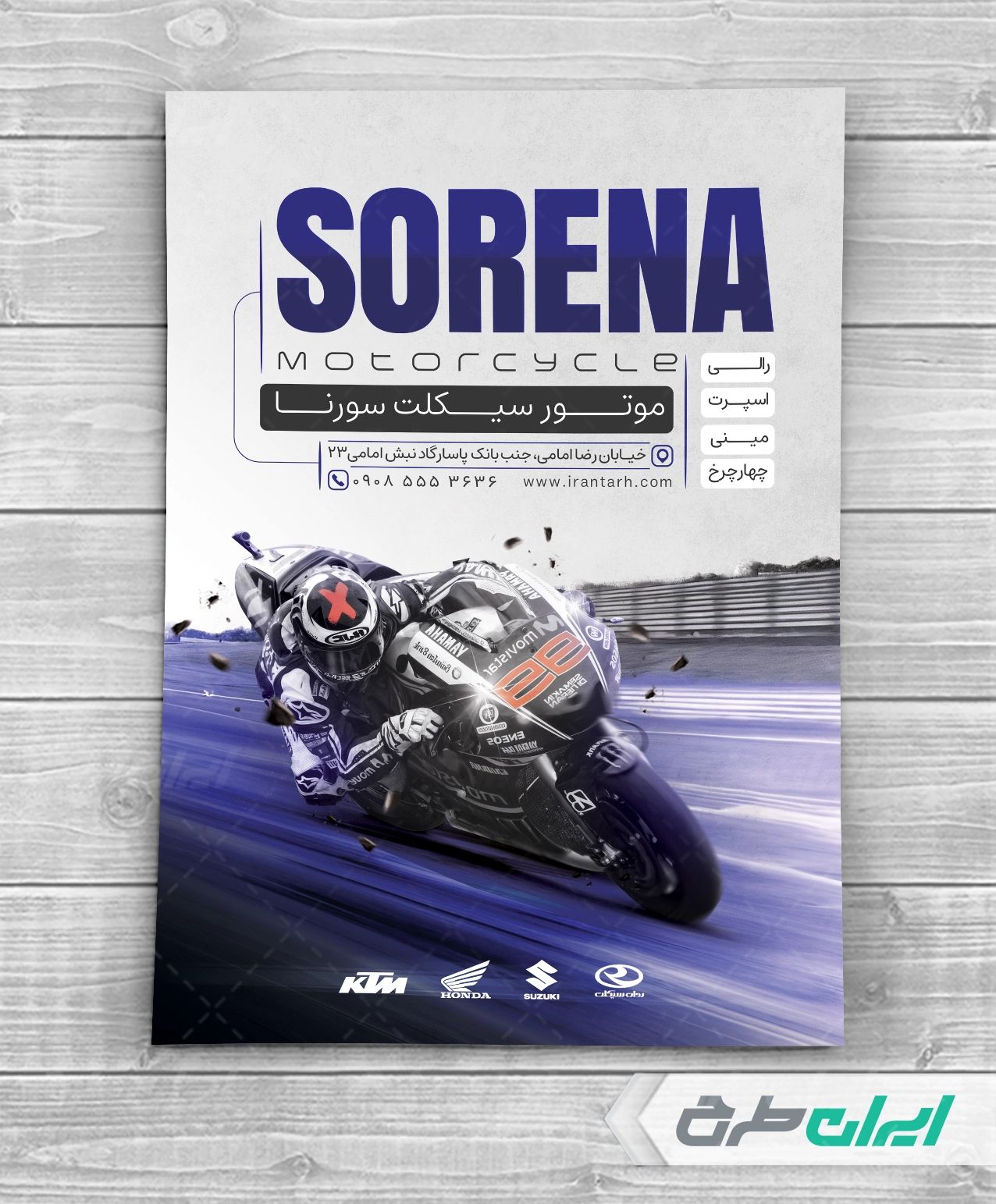 طرح لایه باز تراکت فروشگاه موتور سیکلت، توسط تیم ایران طرح جهت تبلیغات و بازاریابی این مشاغل طراحی و در دسترس کاربران سایت قرار گرفته است.