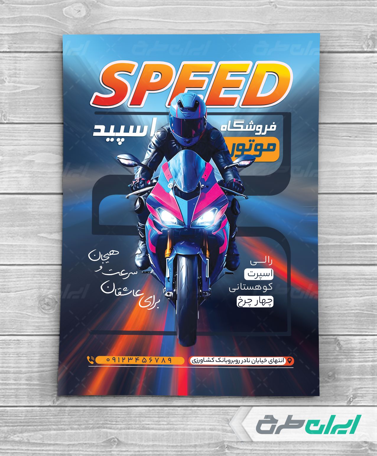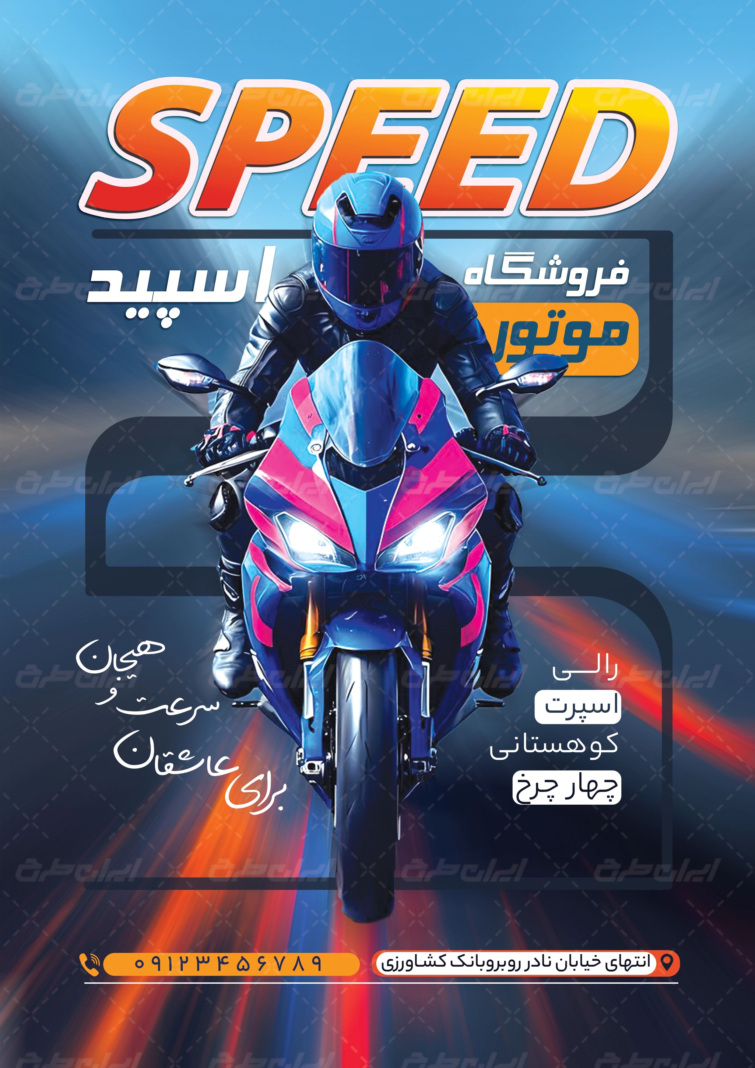 طرح لایه باز تراکت فروشگاه موتور سیکلت، توسط تیم ایران طرح جهت تبلیغات و بازاریابی این مشاغل طراحی و در دسترس کاربران سایت قرار گرفته است.