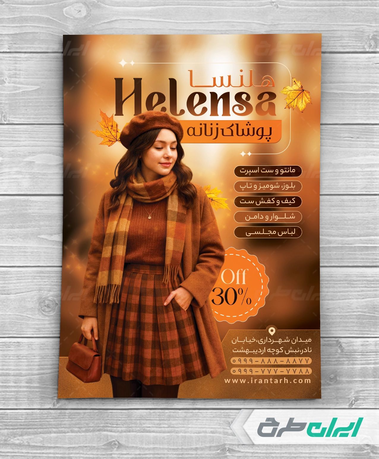 ایران طرح طرح تراکت فروشگاه پوشاک زنانه را جهت تبلیغات و بازاریابی این فروشگاه ها، طراحی و در دسترس کاربران سایت قرار داده است.