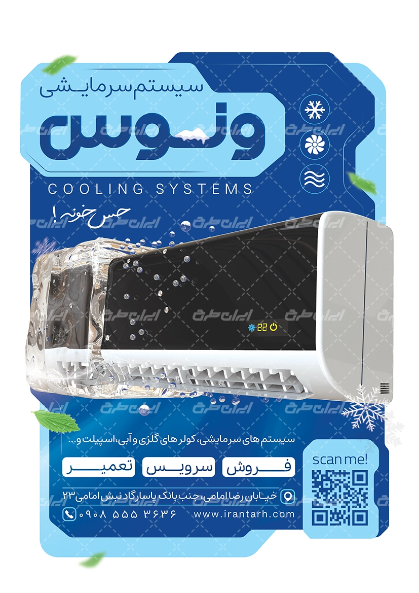 - طراحی شیک و کاربردی تراکت فروشگاه لوازم سرمایشی