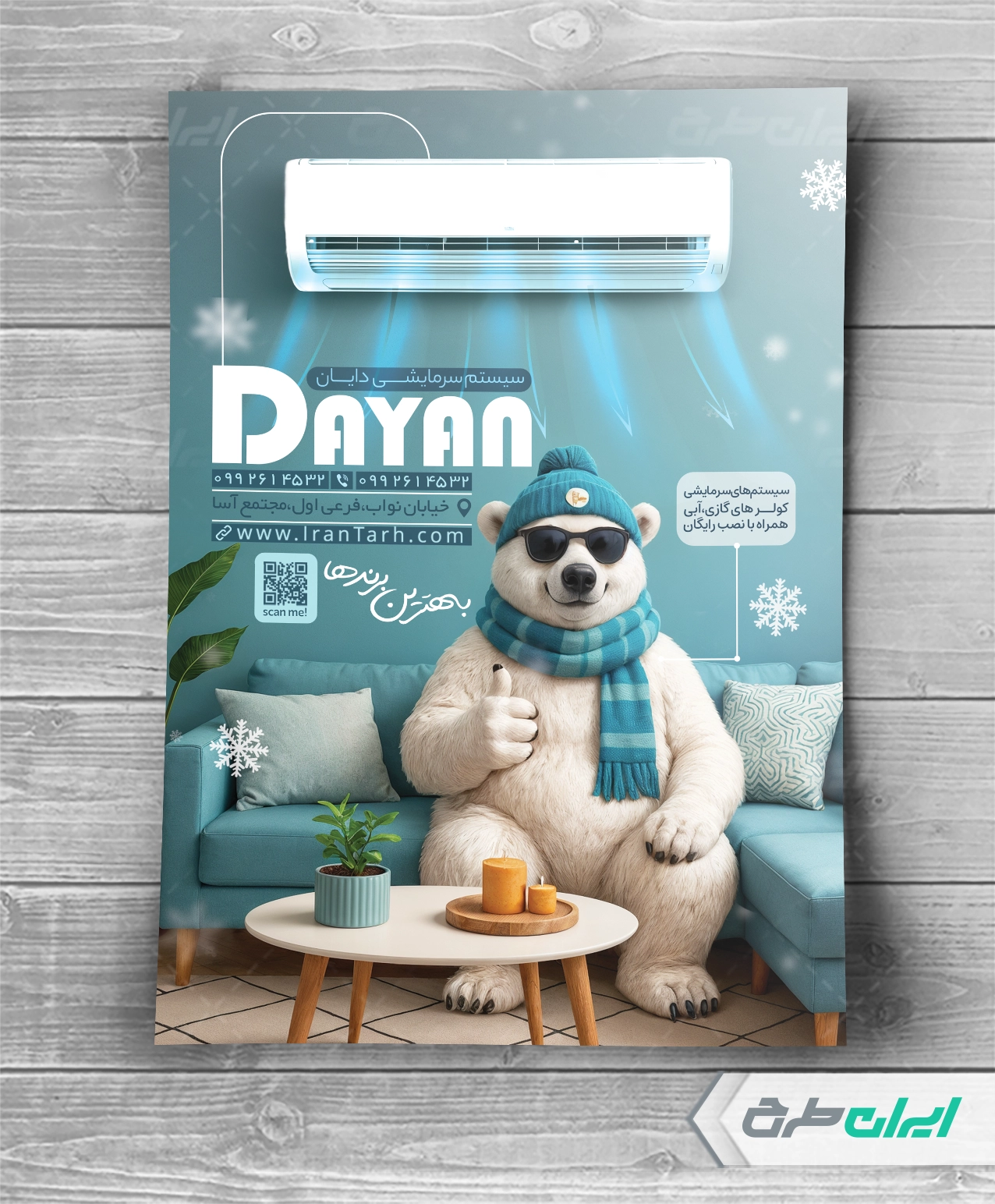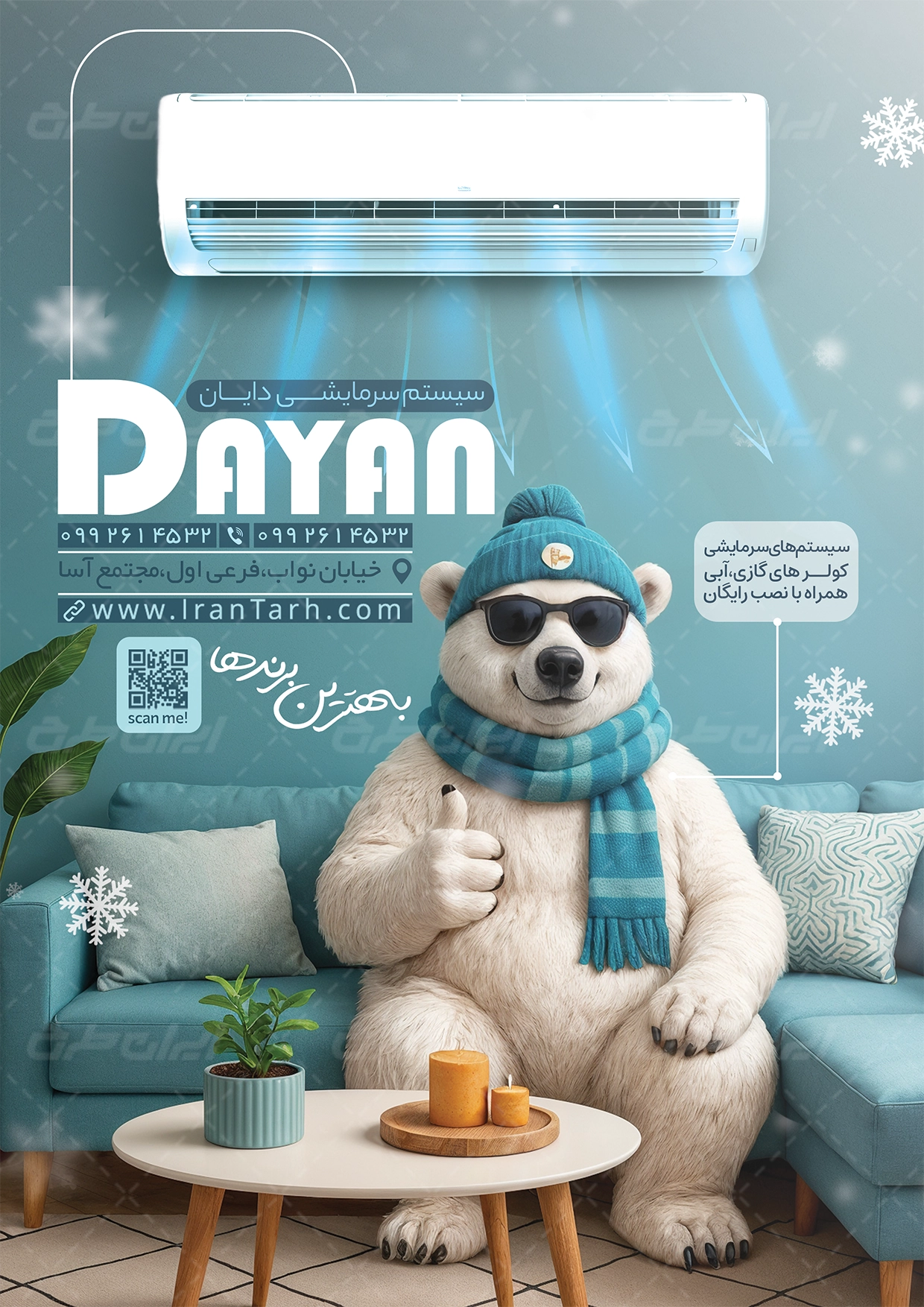 - استفاده مناسب از عکس باکیفیت کولر در طرح تراکت فروشگاه لوازم سرمایشی