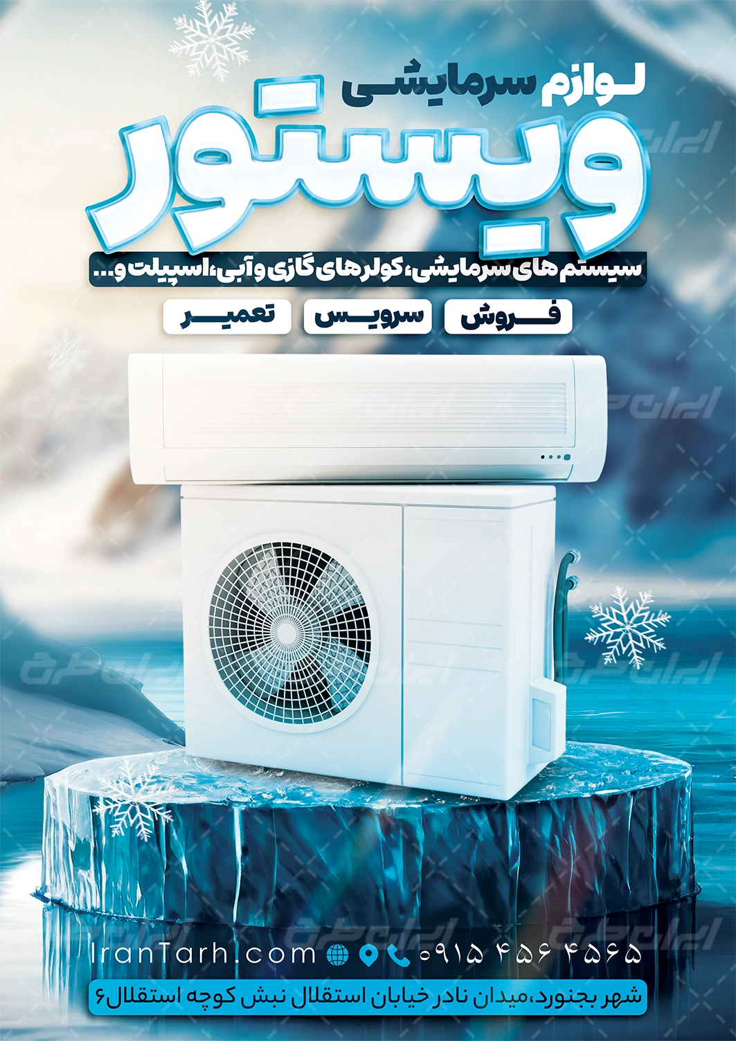 - طراحی شیک و کاربردی تراکت فروشگاه لوازم سرمایشی