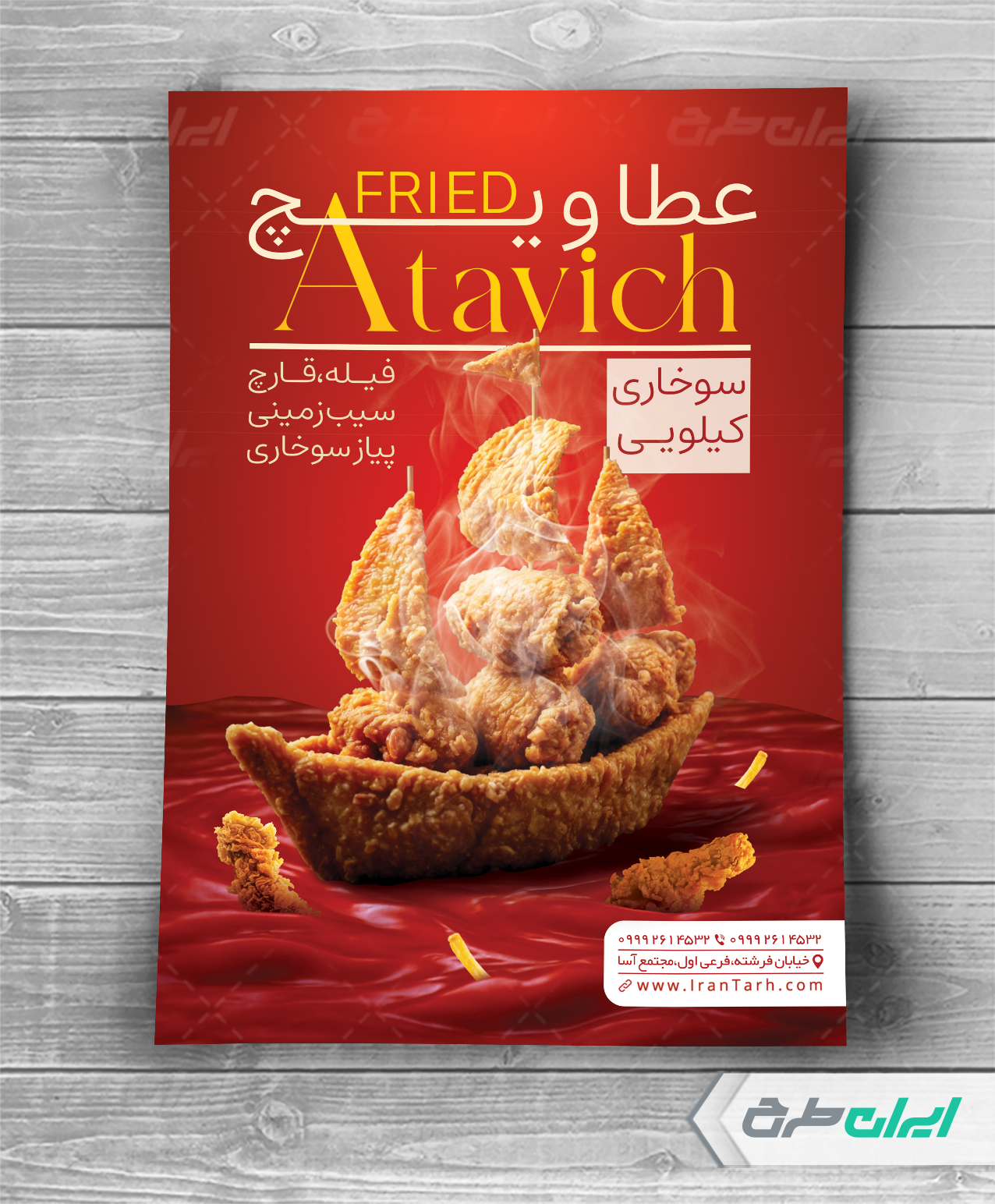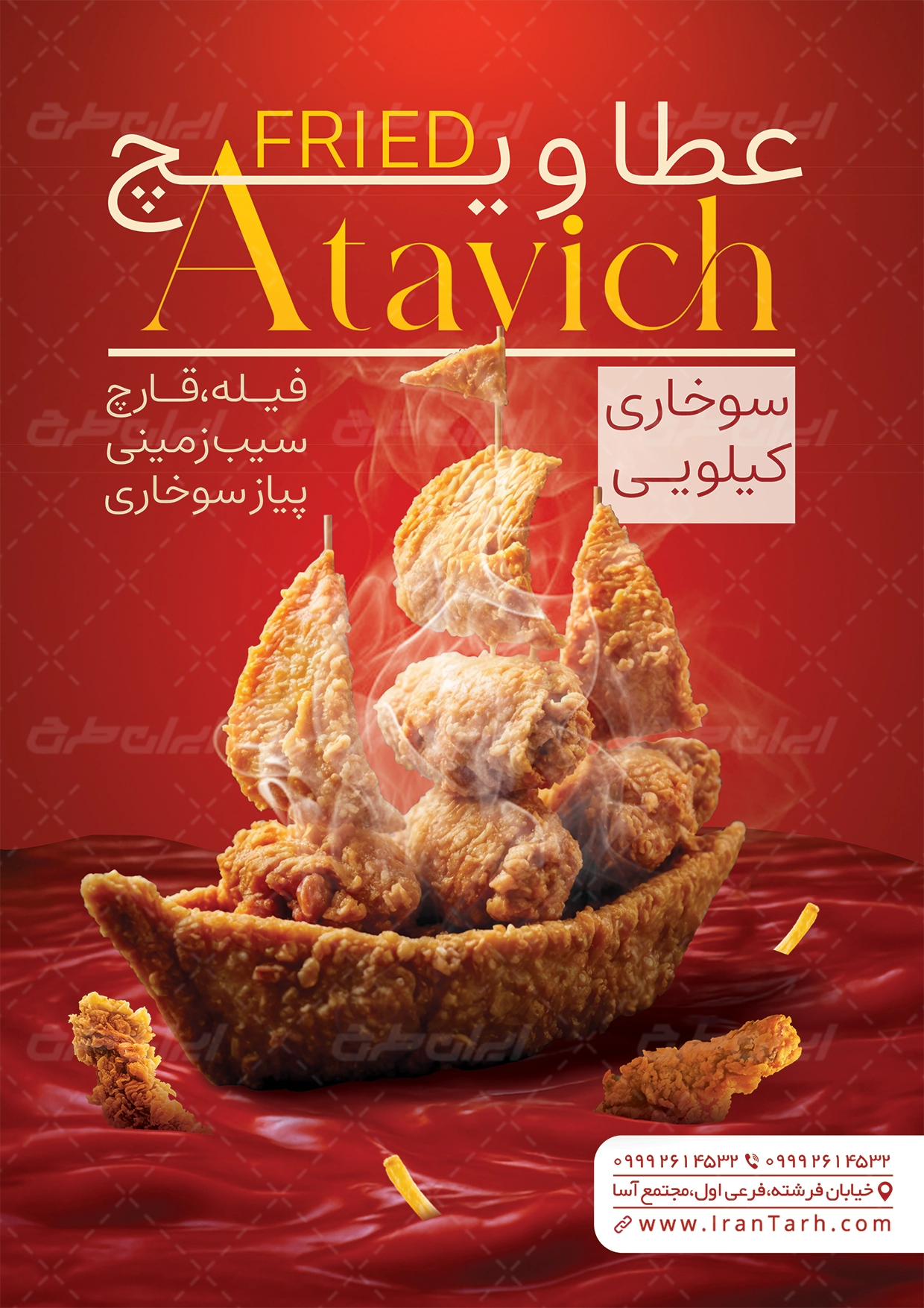 - طراحی تراکت با استفاده از عکس با کیفیت مرغ سوخاری