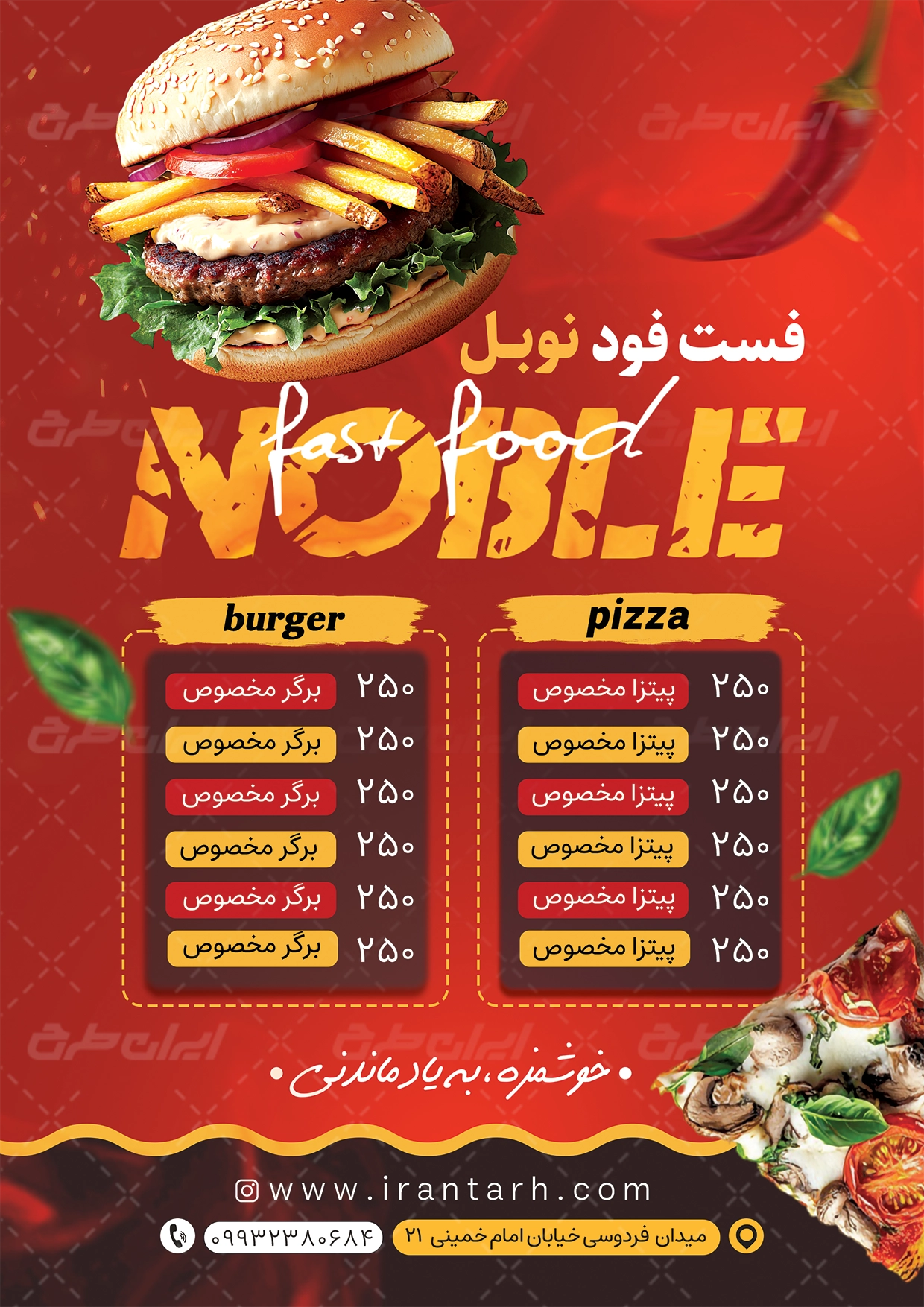 عناصر طرح تراکت فست فودی و پیتزا فروشی