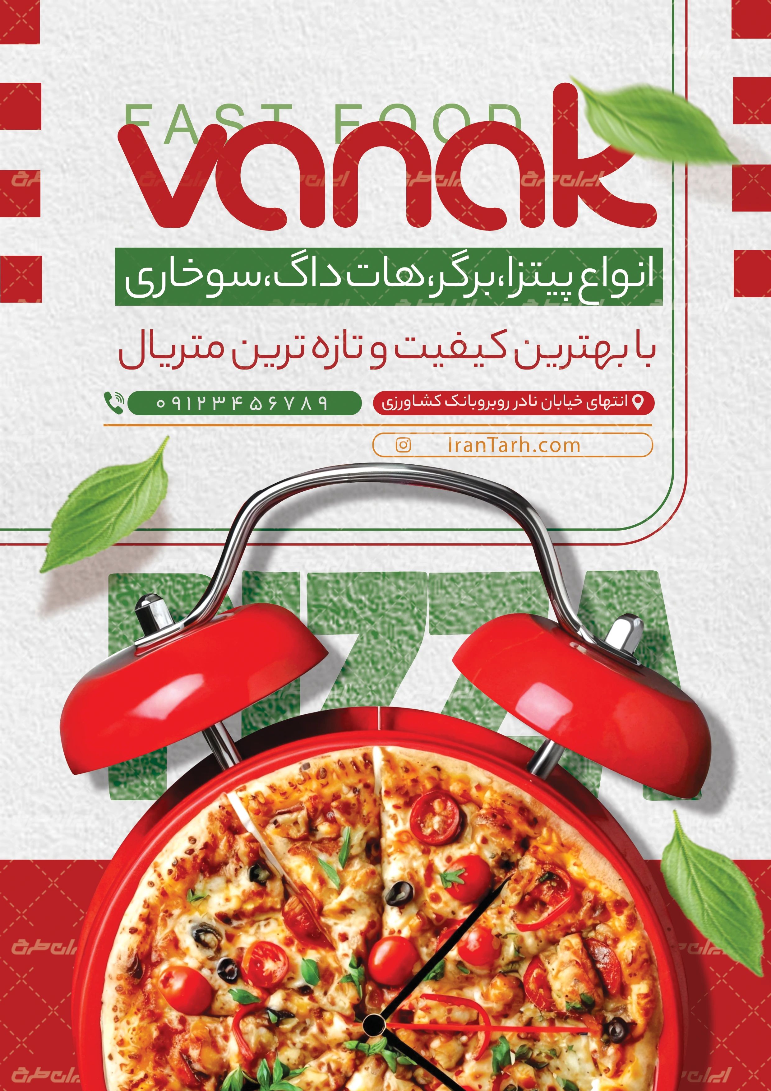 عناصر طرح تراکت فست فودی و پیتزا فروشی