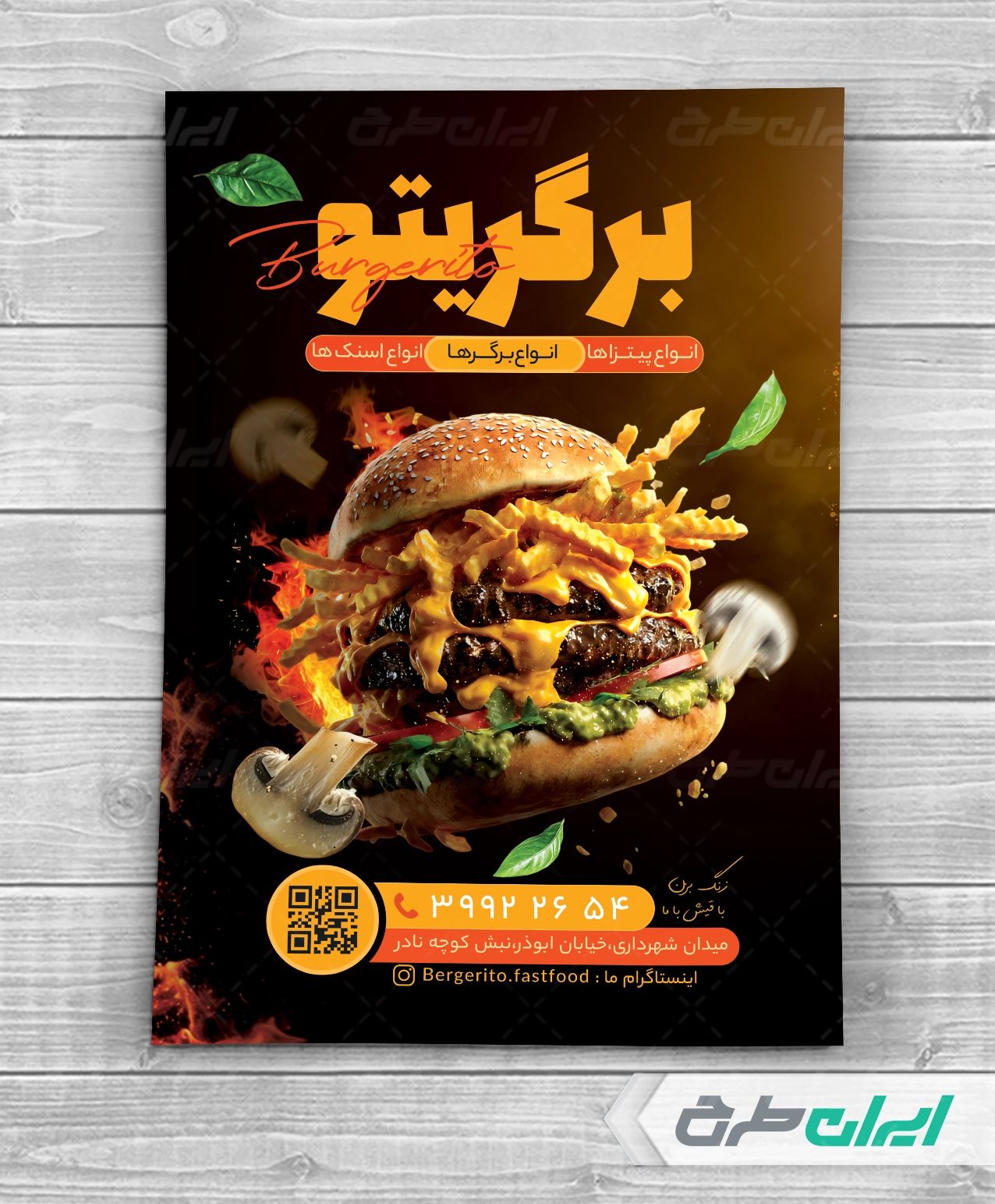 طرح تراکت فست فود جهت استفاده این دسته از رستوران ها توسط طراحان ایران طرح طراحی، و در دسترس کاربران سایت قرار گرفته است.