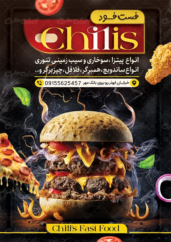 عناصر طرح تراکت فست فودی و پیتزا فروشی