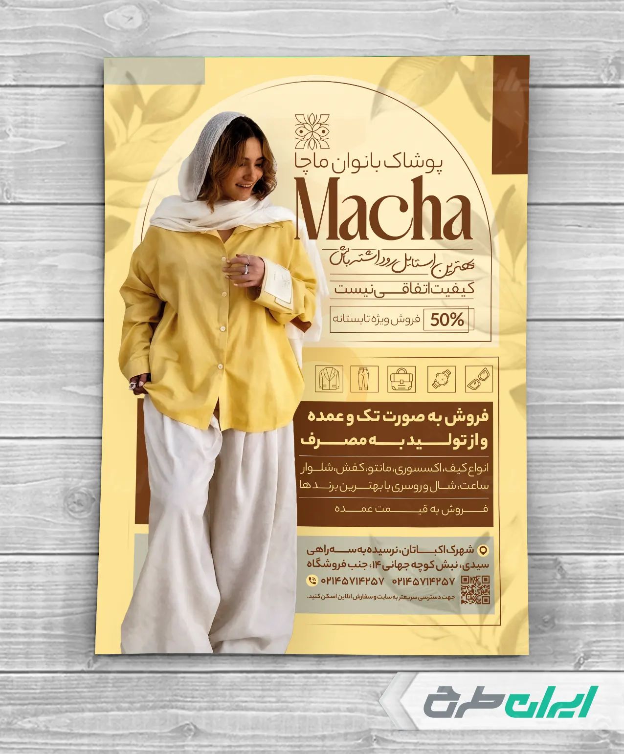 ایران طرح طرح تراکت فروشگاه پوشاک زنانه را جهت تبلیغات و بازاریابی این فروشگاه ها، طراحی و در دسترس کاربران سایت قرار داده است.