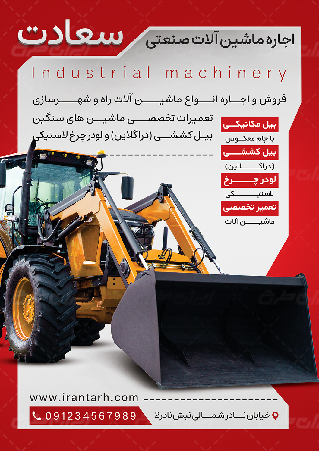 - استفاده از تصویر ماشین آلات صنعتی که مناسب طرح تراکت ماشین های راه سازی می باشد.