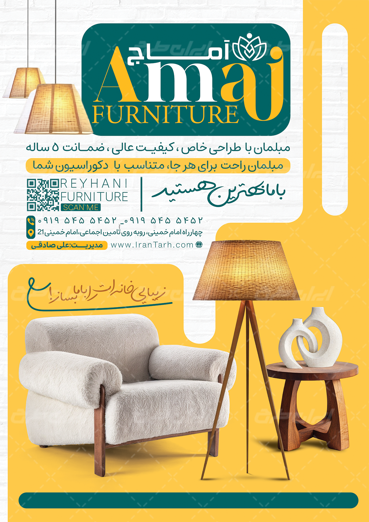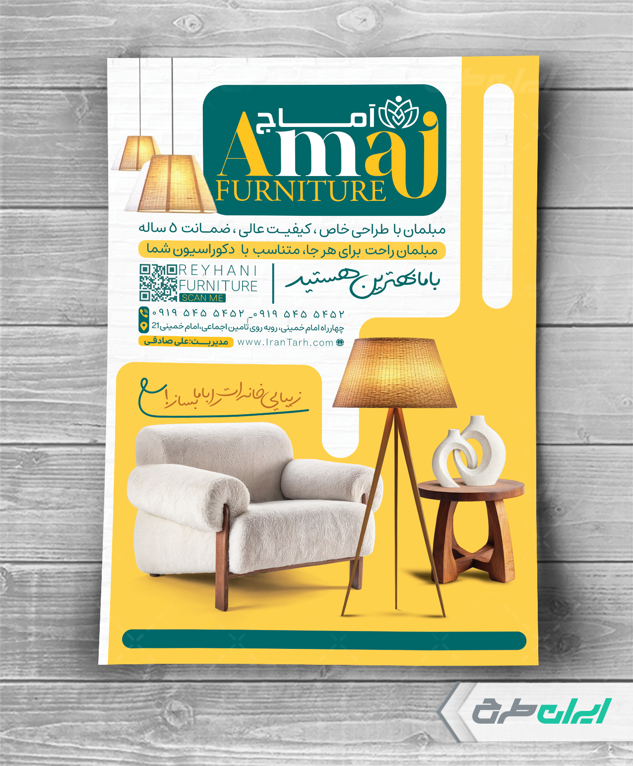طرح تراکت لایه باز مبلمان، جهت بازاریابی و تبلیغات این فروشگاه ها توسط ایران طرح طراحی و در اختیار کاربران سایت قرار گرفته است.