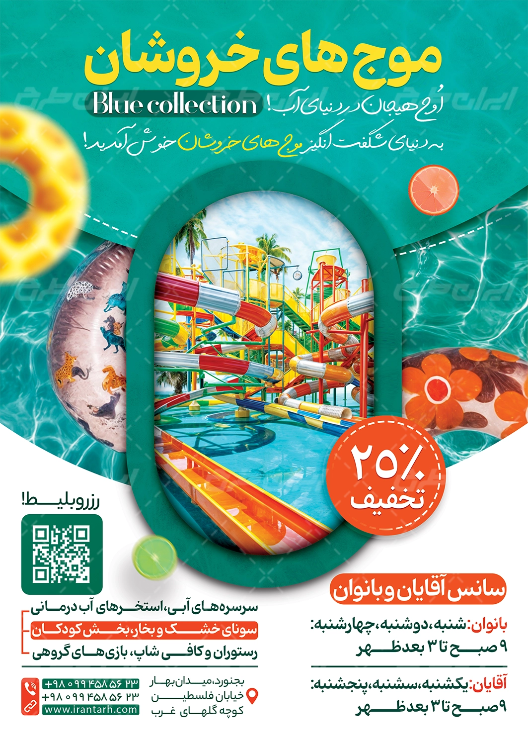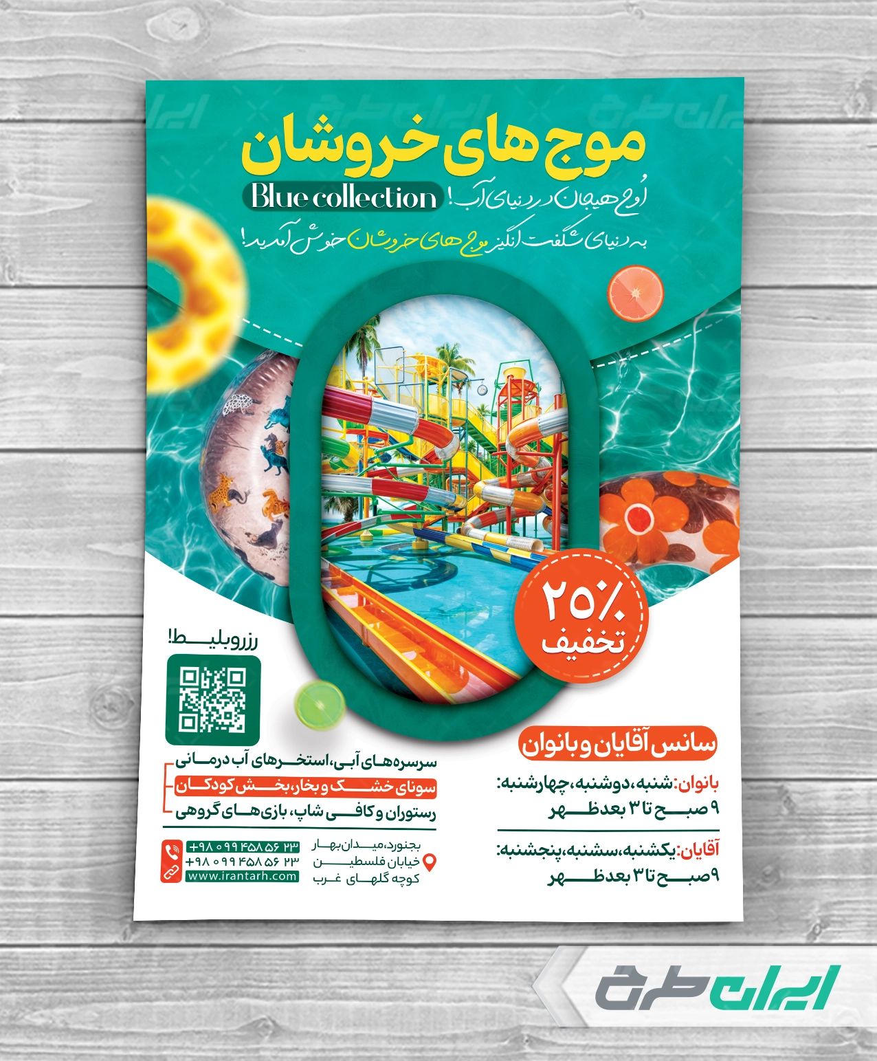 تراکت لایه باز تفریحات آبی، توسط تیم ایران طرح جهت تبلیغات و بازاریابی این مکان ها طراحی و در دسترس کاربران سایت قرار گرفته است.