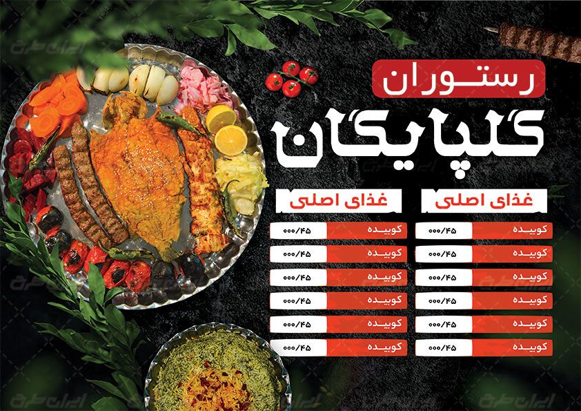طرح تراکت منوی رستوران، توسط تیم ایران طرح برای بازاریابی و تبلیغات این فروشگاه طراحی شده است.
