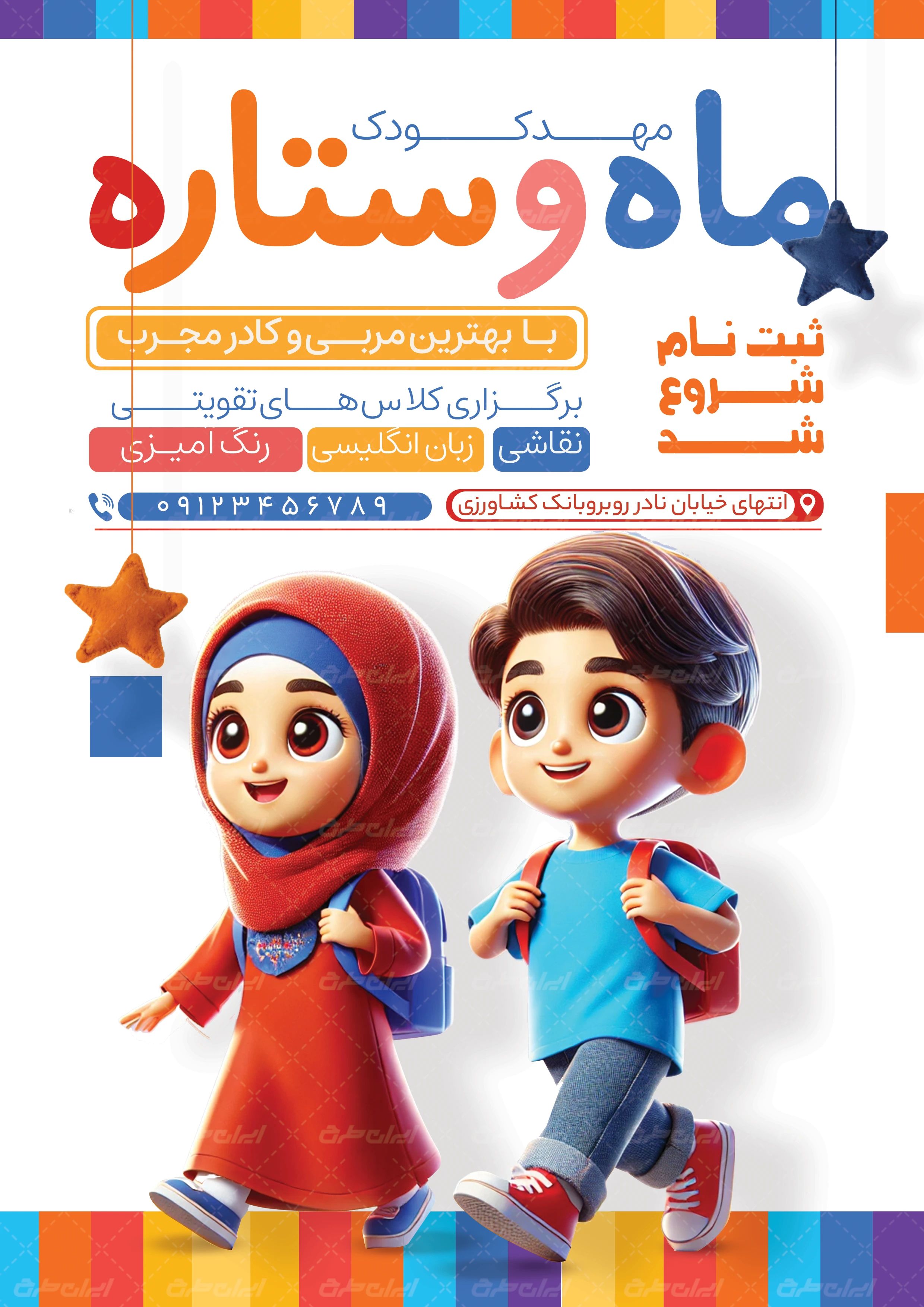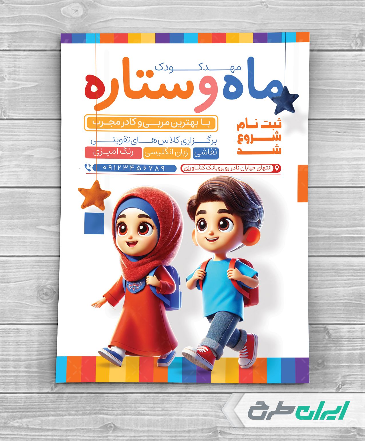 طرح تراکت لایه باز مهدکودک و پیش دبستانی جهت تبلیغات و بازاریابی این دسته از مشاغل توسط تیم ایران طرح طراحی شده است.