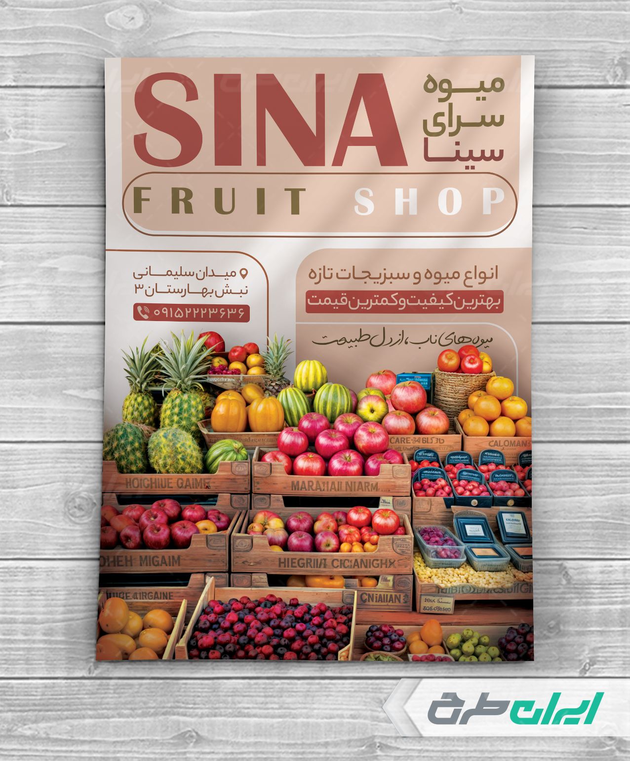 تیم ایران طرح تراکت لایه باز میوه سرا را برای بازاریابی و تبلیغات گسترده تر این فروشگاه ها طراحی و در دسترس کاربران سایت قرار داده است.