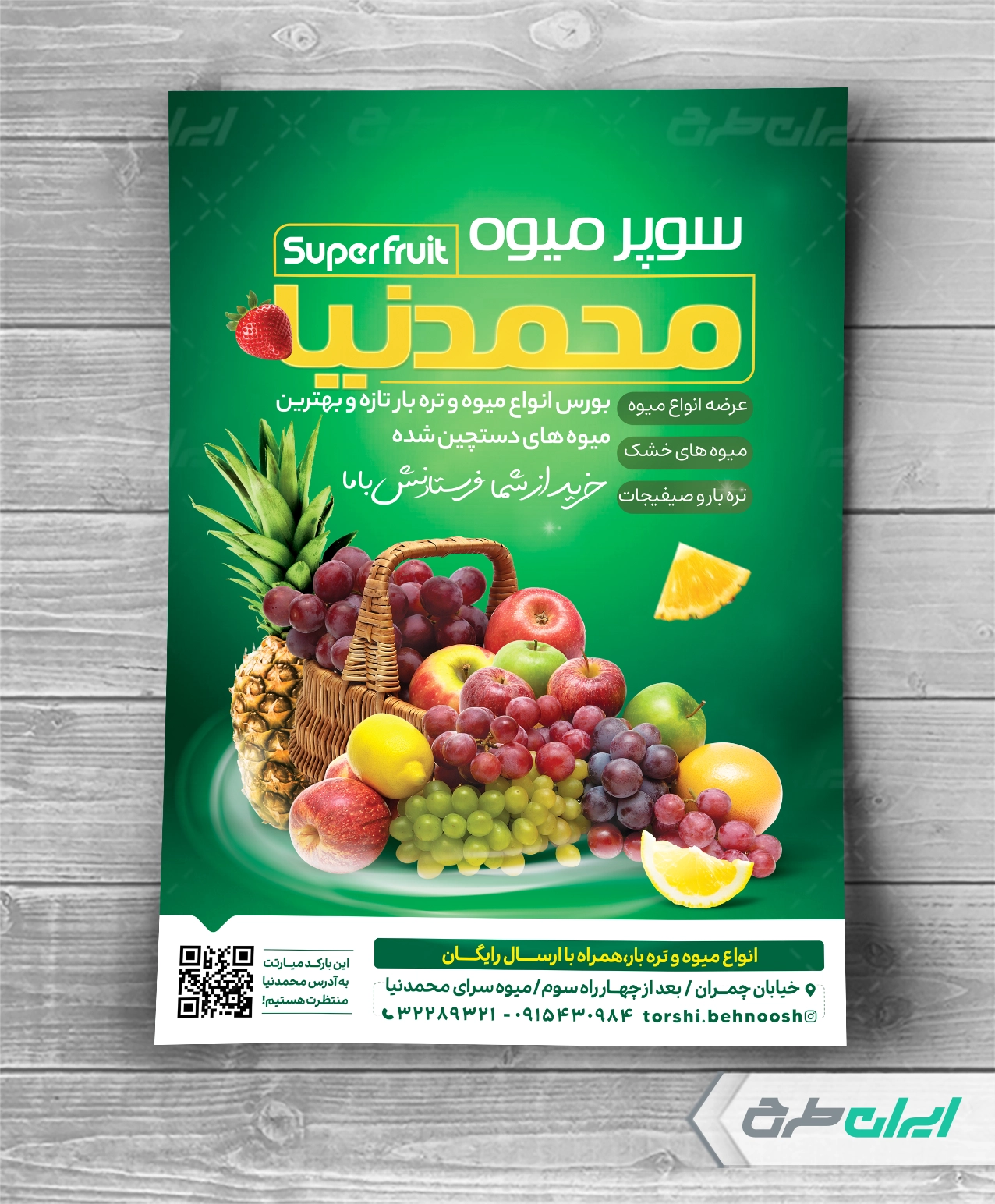تیم ایران طرح تراکت لایه باز میوه سرا را برای بازاریابی و تبلیغات گسترده تر این فروشگاه ها طراحی و در دسترس کاربران سایت قرار داده است.