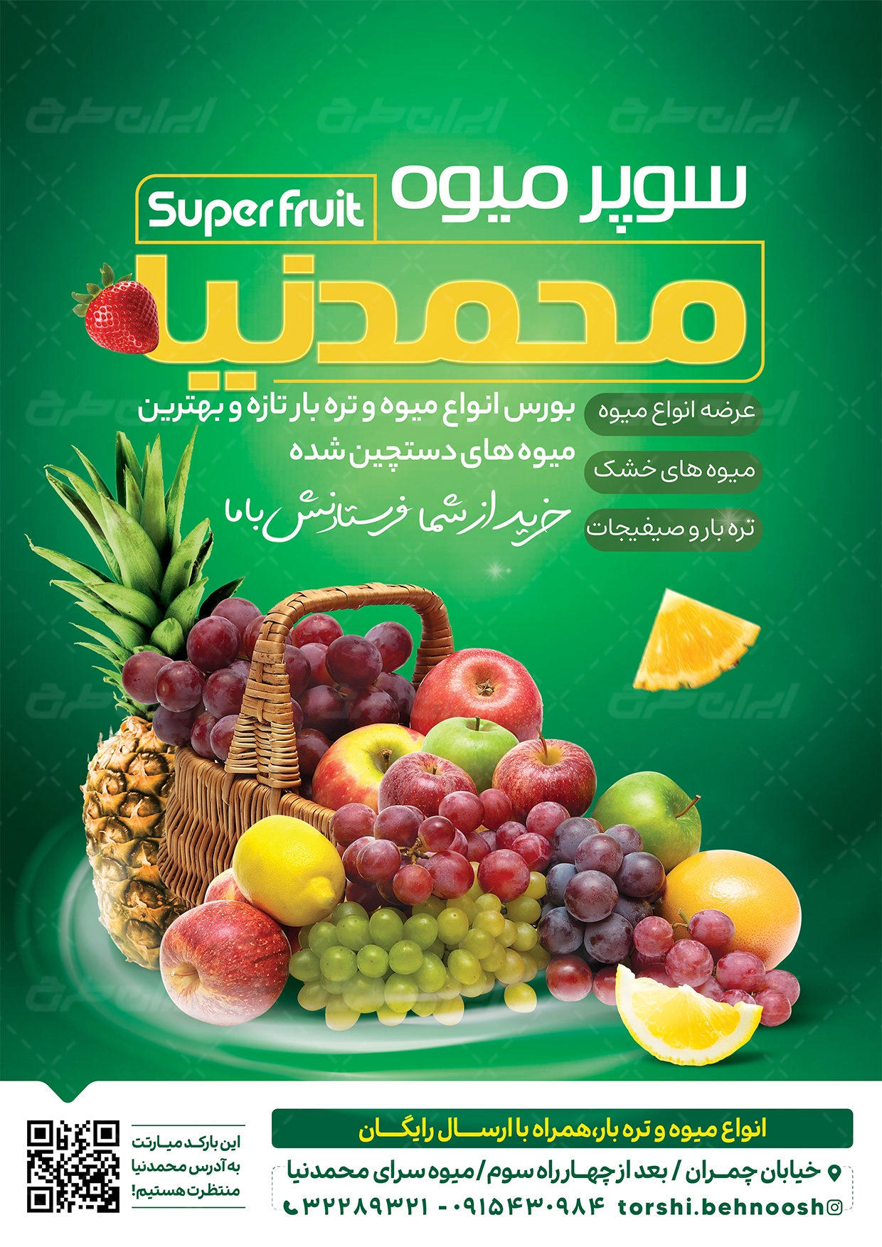 طرح تراکت میوه سرا شامل: