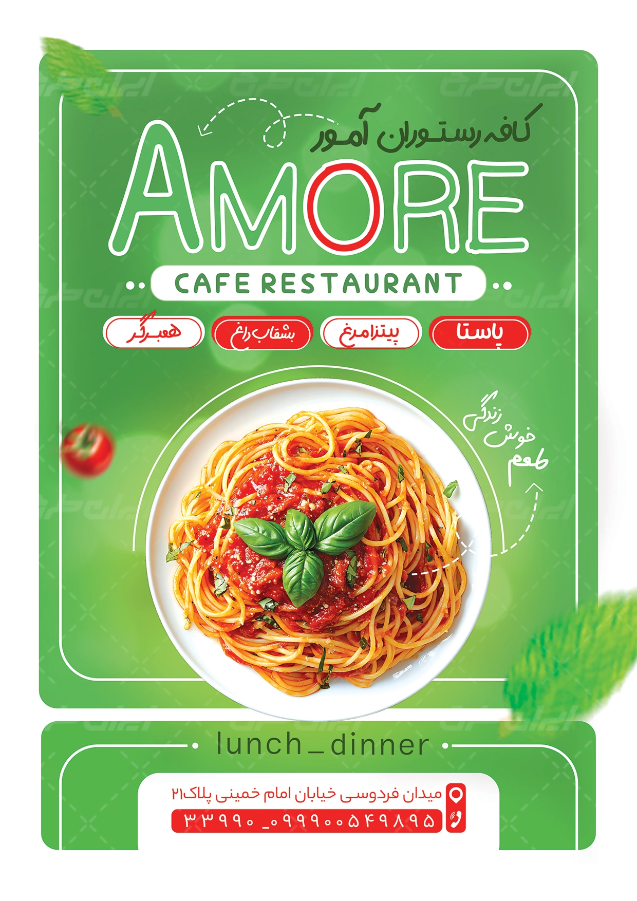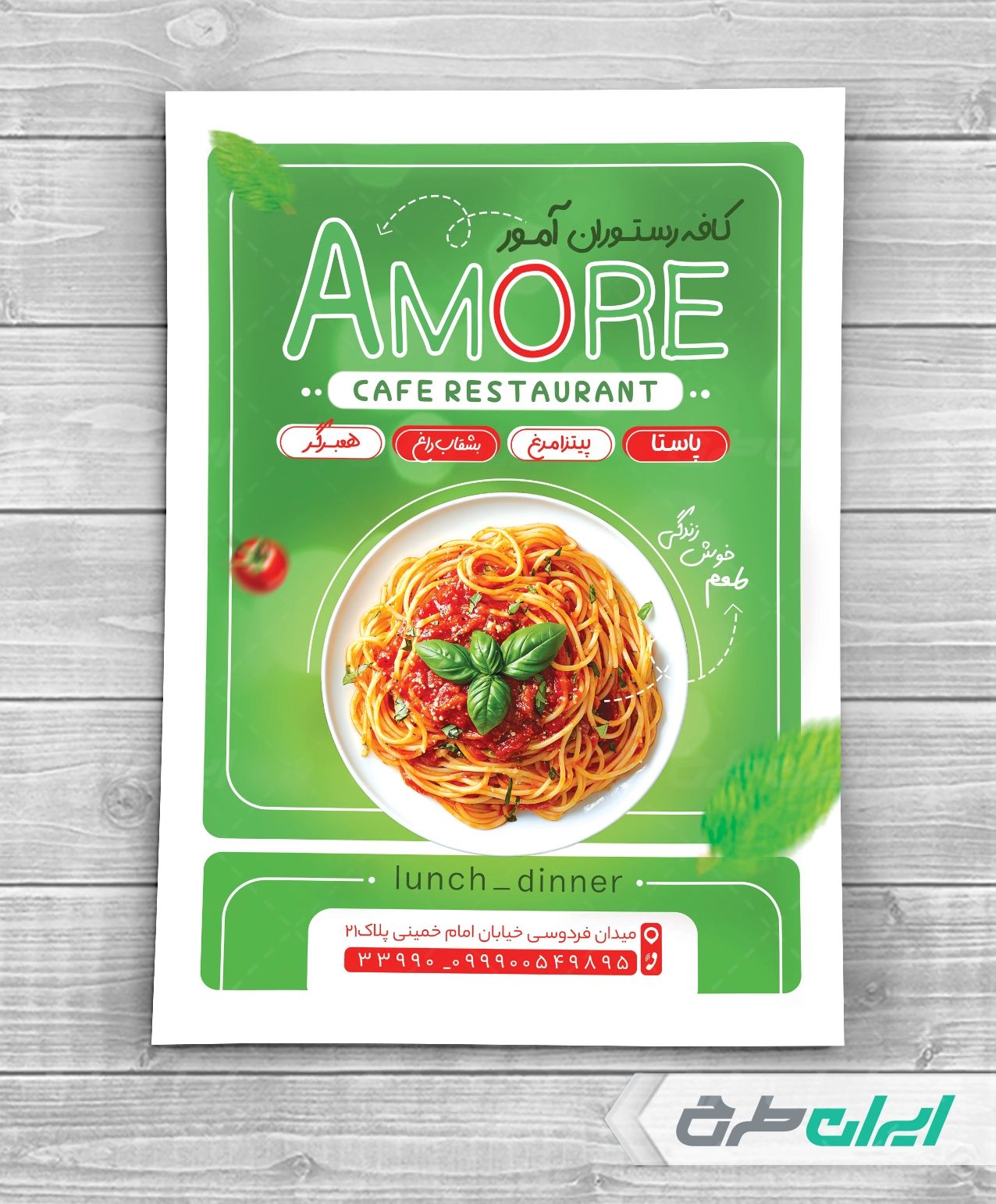 طرح تراکت لایه باز رستوران، توسط تیم ایران طرح برای بازاریابی و تبلیغات این دسته از مشاغل طراحی شده است.
