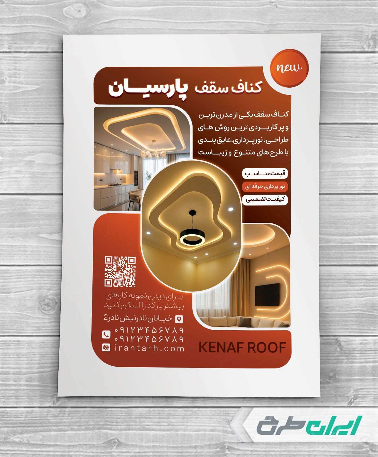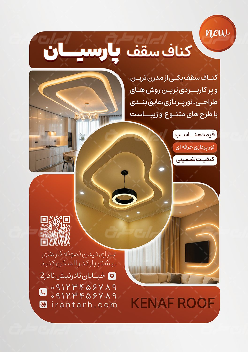 - استفاده مناسب از عکس با کیفیت سقف و کناف سقفی در طرح تراکت خدمات کناف سقفی