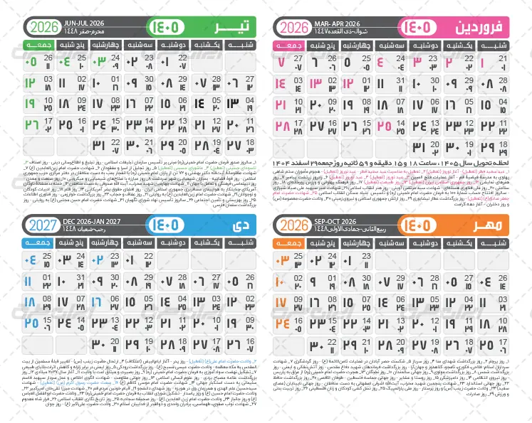 - همنشینی مناسب رنگ های بکار رفته و طرح تقویم