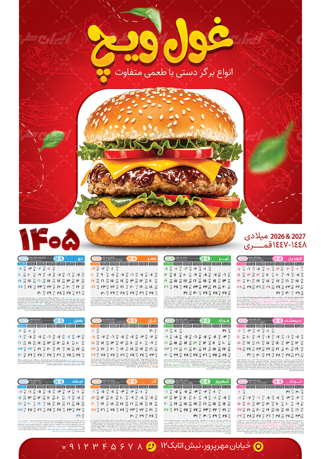 تقویم , تقویم سوخاری 1405 , دانلود تقویم دیواری سال 1405 , تقویم سال 1405 , سال 1405 , دانلود تقویم , تقویم فست فود 1405 , تقویم پیتزا فروشی 1405 , تقویم ساندویچی 1405 , تقویم لایه باز , طرح تقویم پیتزا و ساندویچ 1405 , تقویم دیواری سال 1405 , طرح تقویم سوخاری 1405 , طرح تقویم 1405 , طرح لایه باز تقویم ,