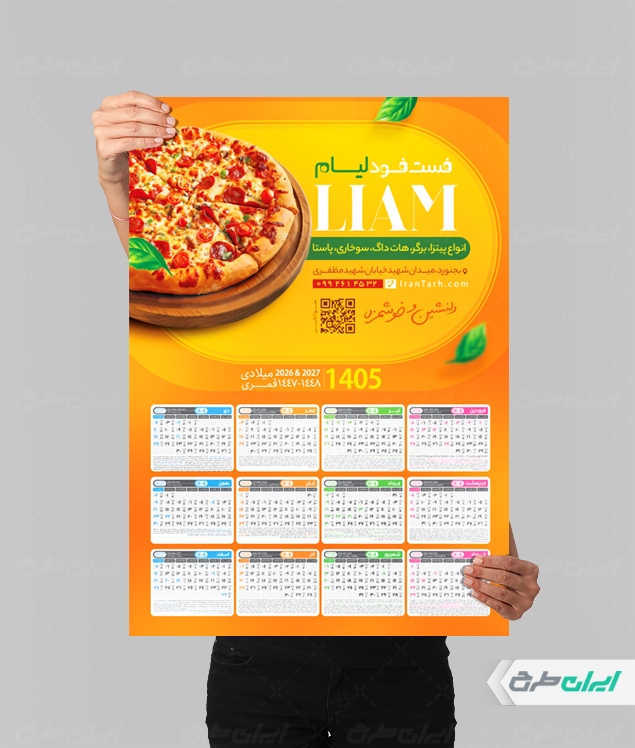 - استفاده مناسب از عکس باکیفیت فست فود که مناسب طرح تقویم پیتزا و ساندویچ 1405 می باشد.