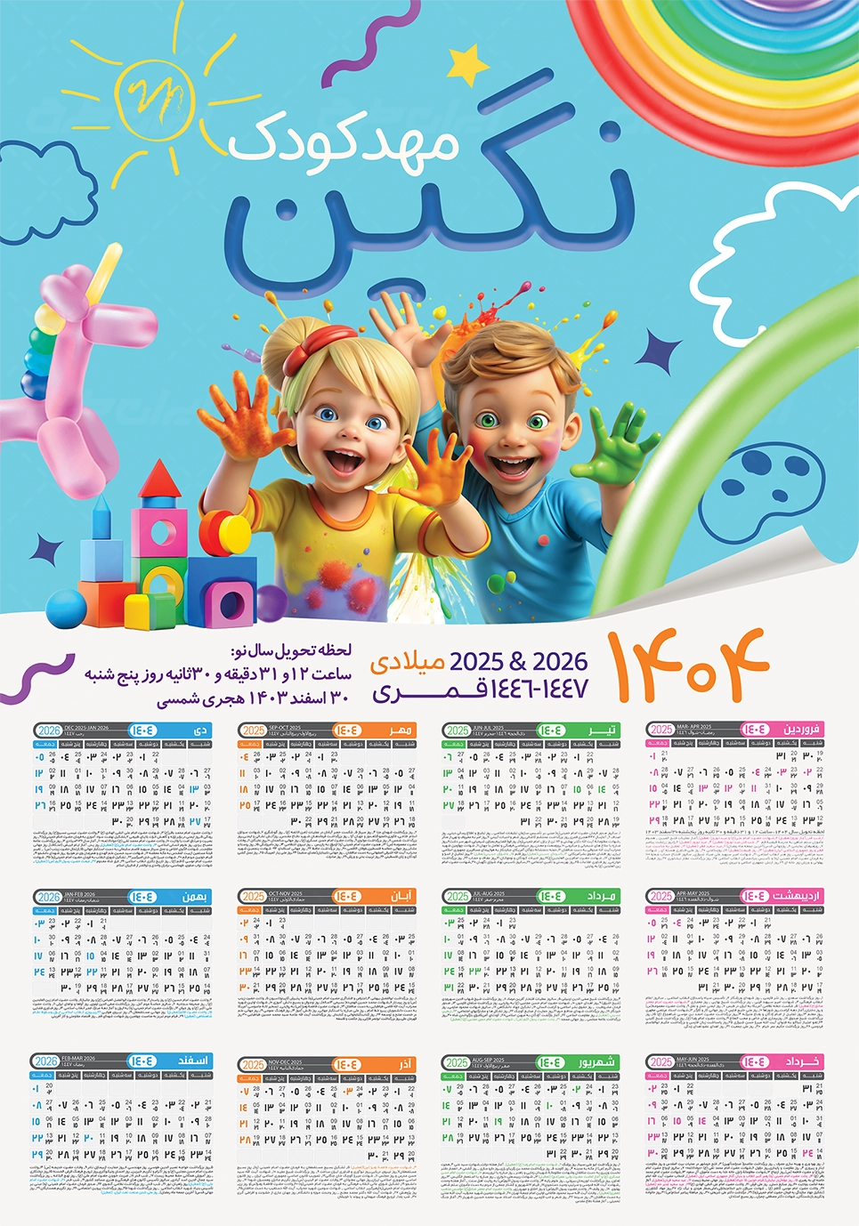 - طراحی شیک و فانتزی تقویم کودک 1404