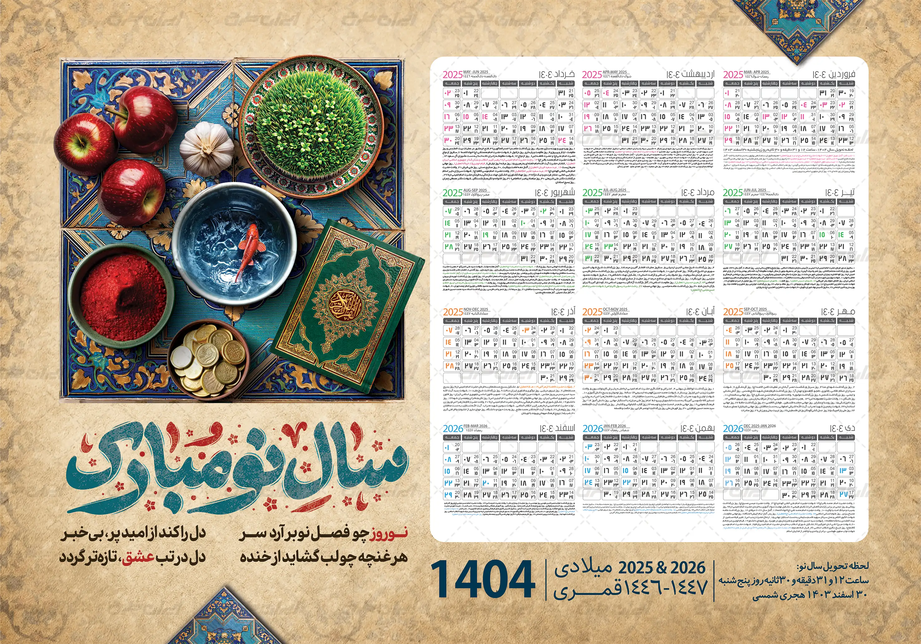 طرح تقویم تبریک نوروز 1404 شامل :