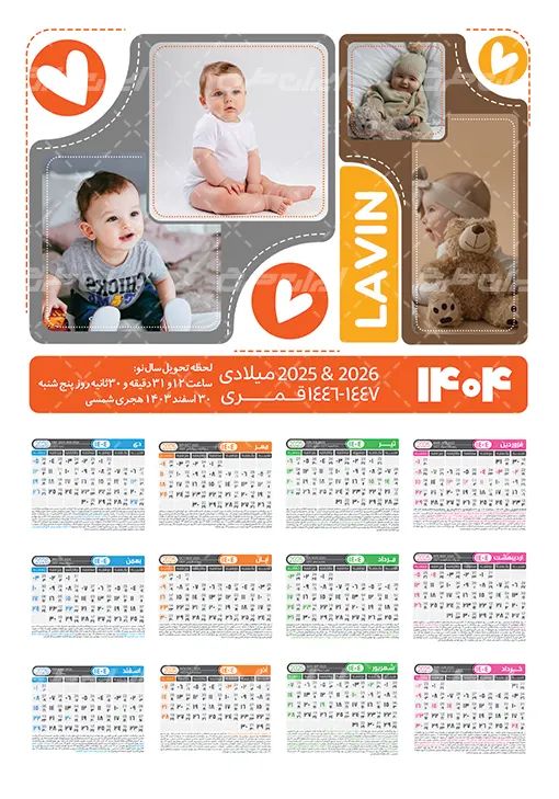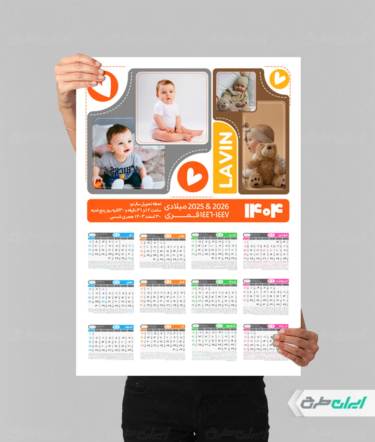 - استفاده مناسب از عکس با کیفیت کودک که مناسب طرح تقویم کودک 1404 می باشد.