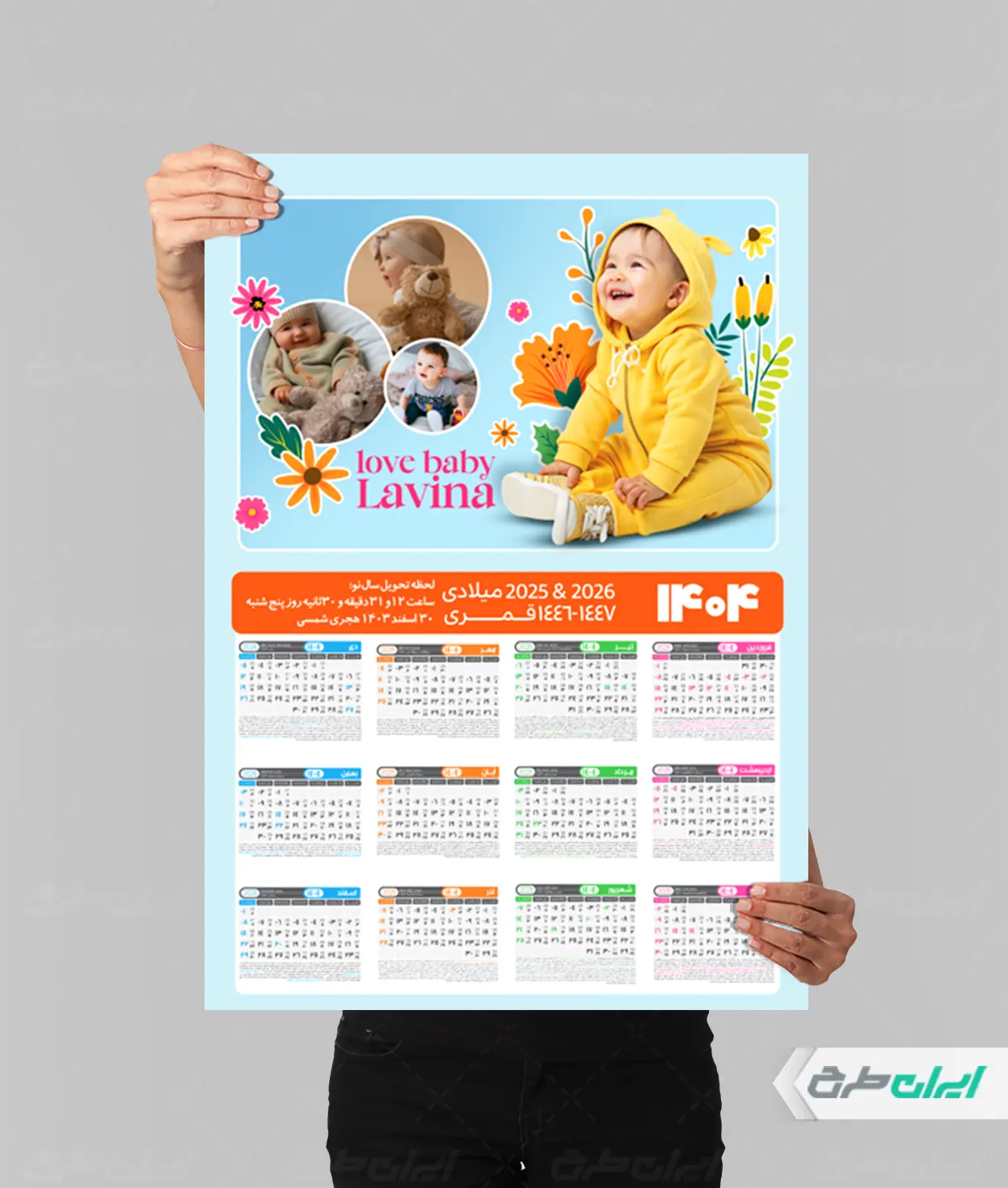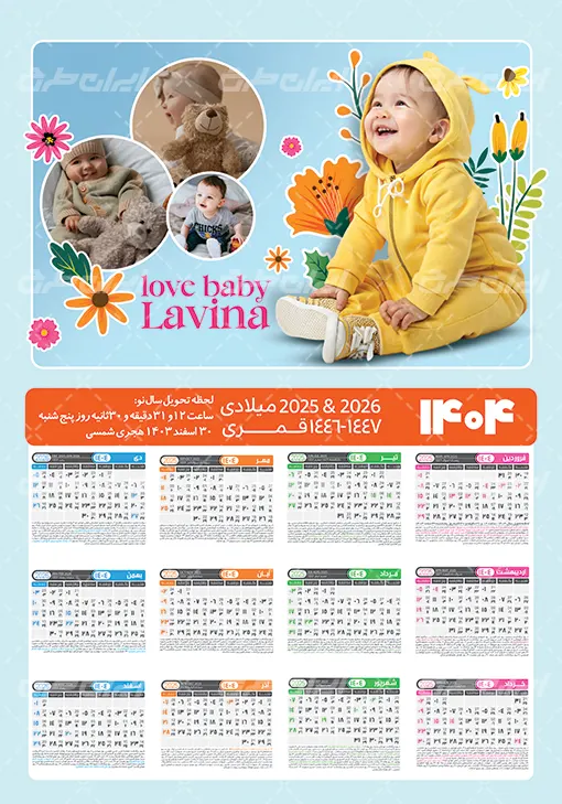 - استفاده مناسب از عکس با کیفیت کودک که مناسب طرح تقویم کودک 1404 می باشد.
