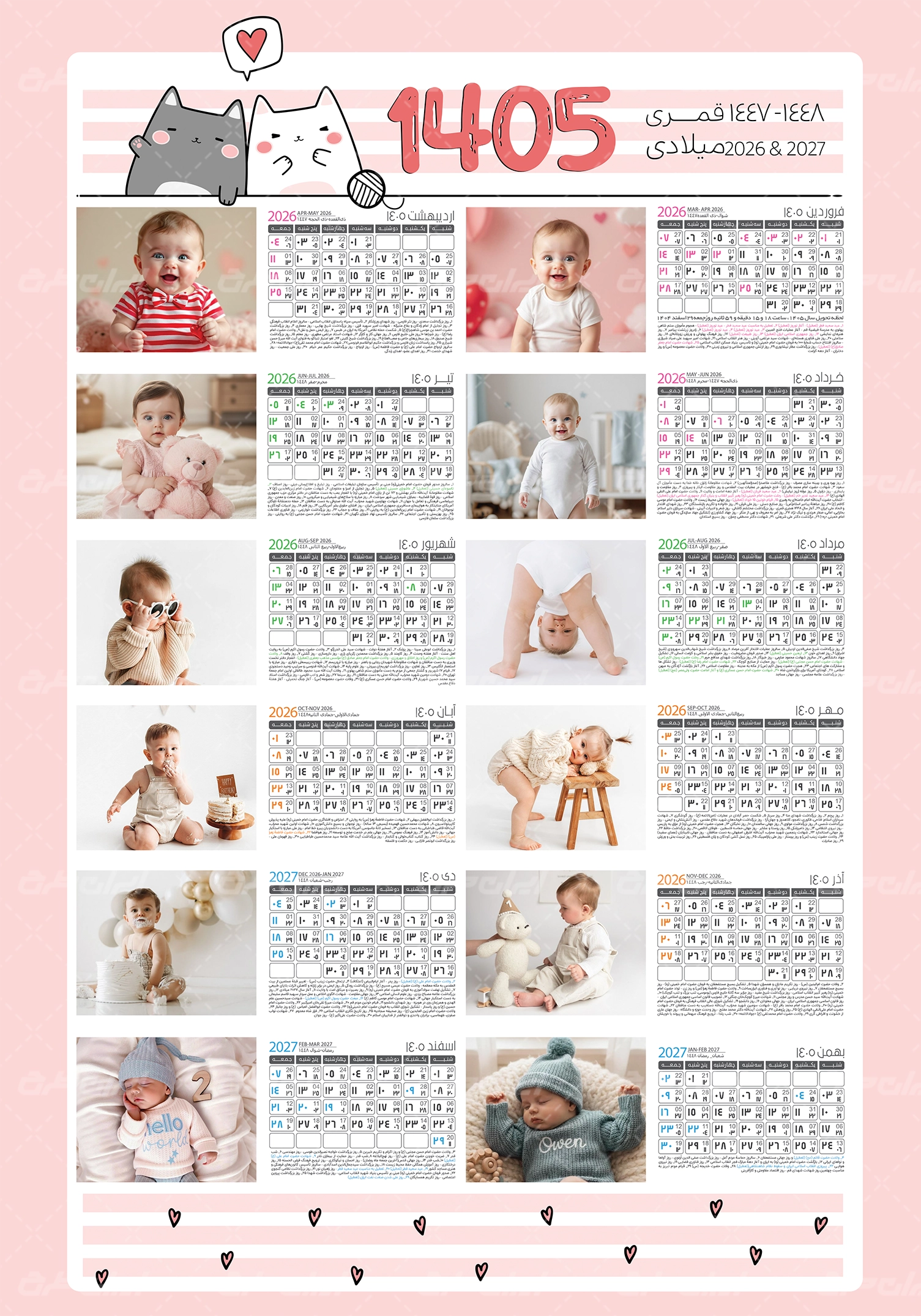 - طراحی شیک و فانتزی تقویم کودک 1405