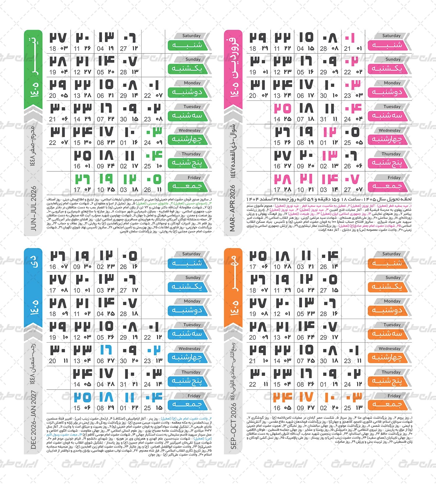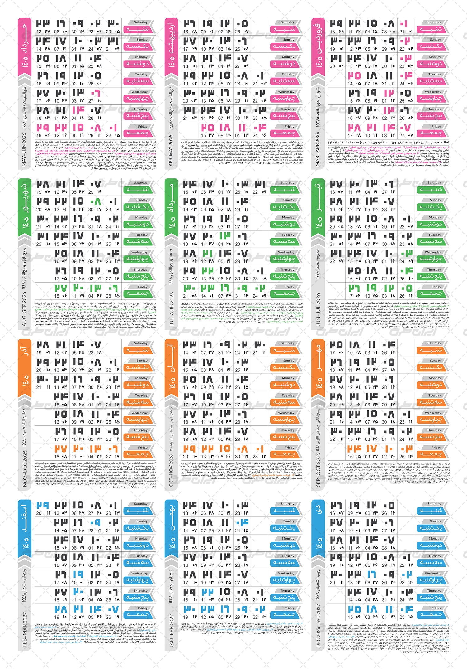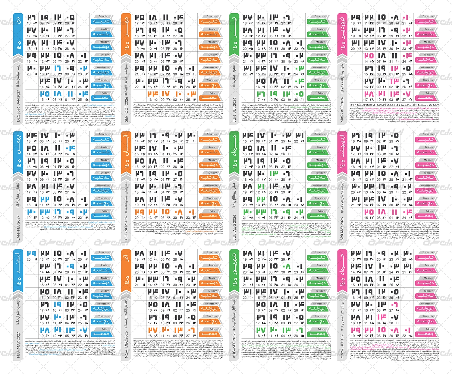 طرح تقویم 1405 شامل :