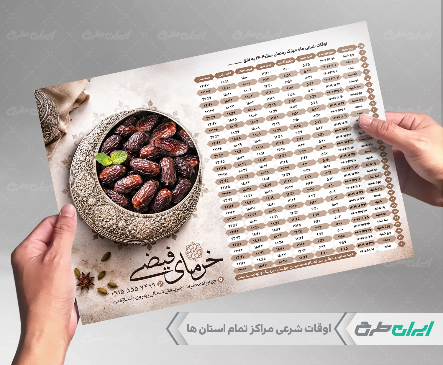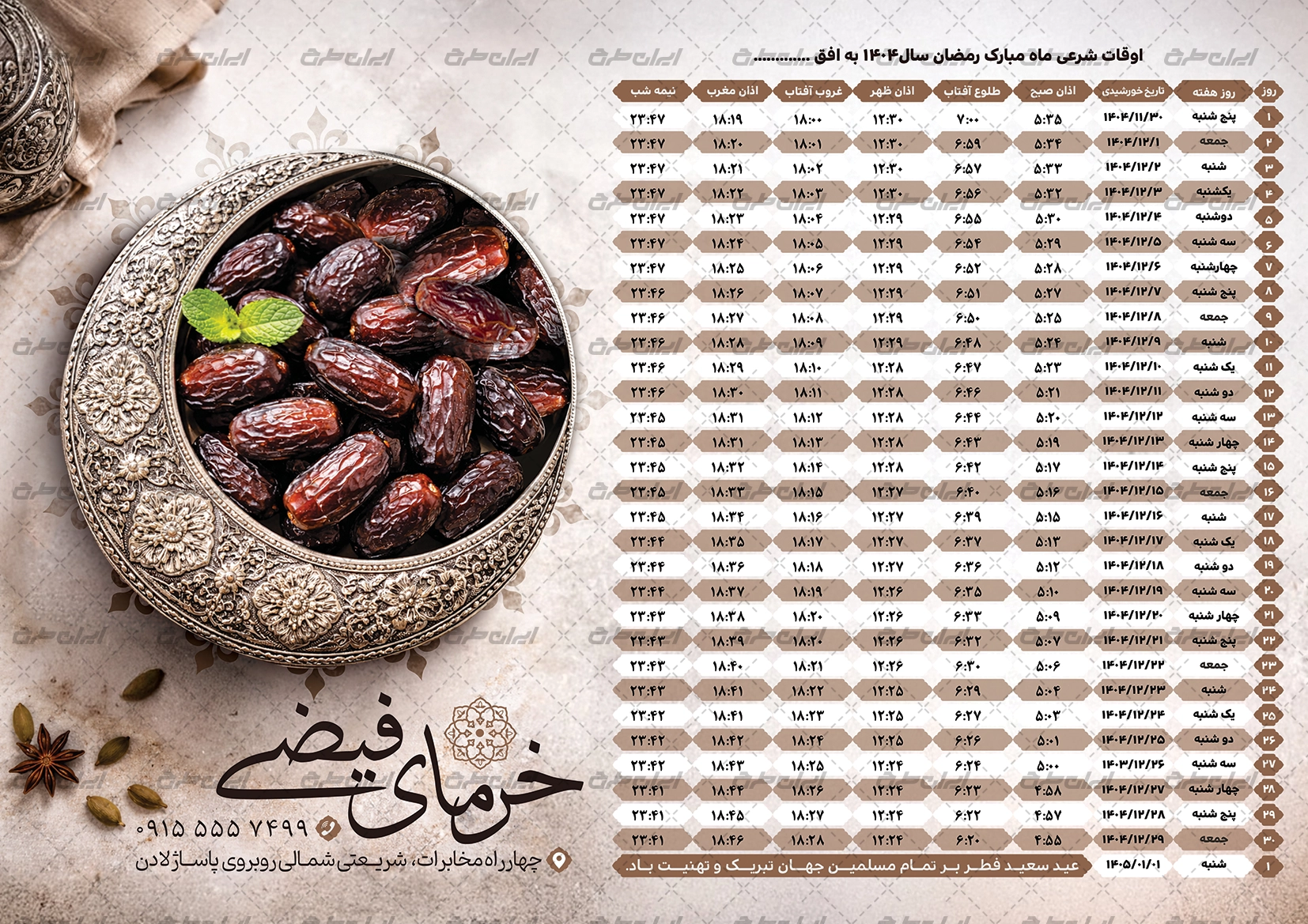 طرح لایه باز جدول اوقات شرعی 1404 خرما فروشی