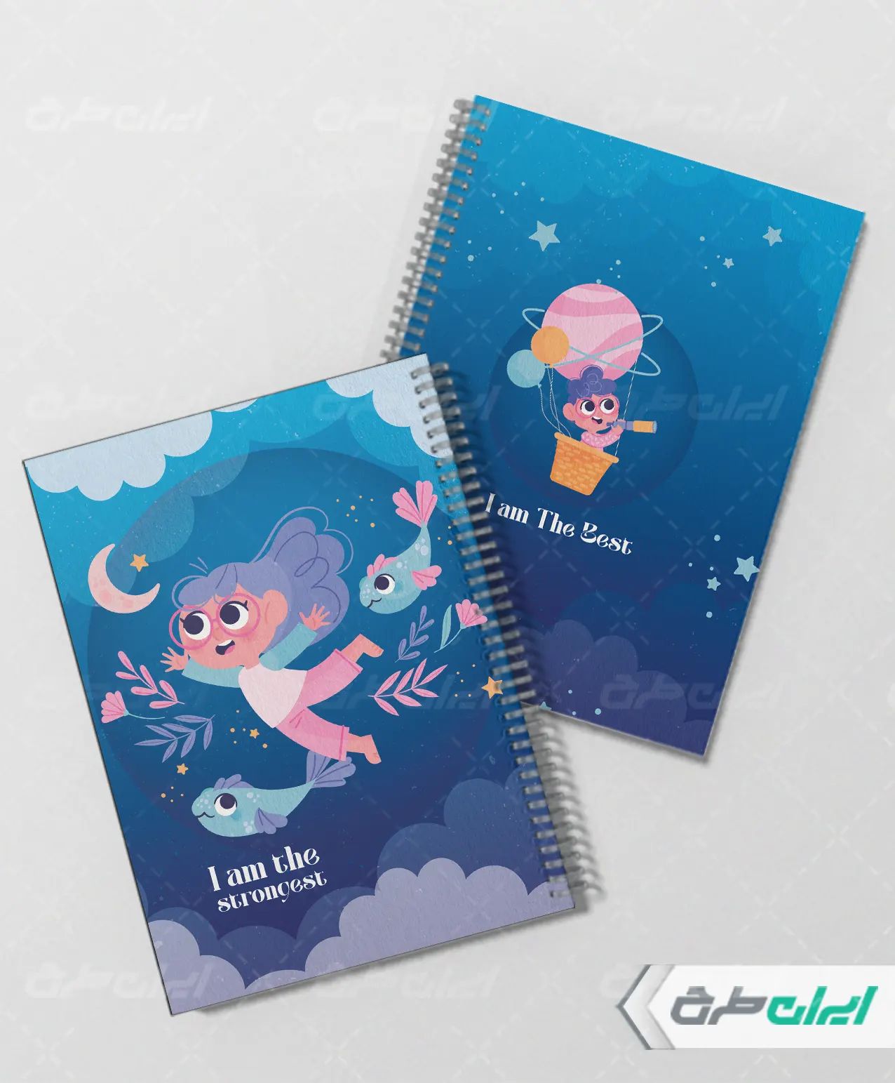 - همنشینی مناسب رنگ آبی در طرح جلد دفتر