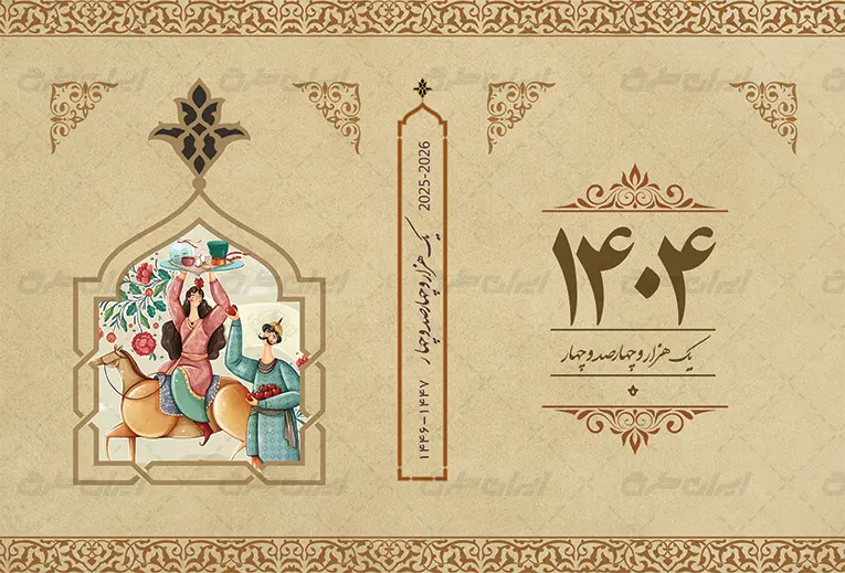 طرح جلد سررسید سال 1404 شامل: حاشیه مذهبی، تذهیب، کادر مذهبی، نقوش اسلیمی، لیبل و شیپ های کاربردی می باشد که توسط طراحان ایران طرح در نرم افزار فتوشاپ طراحی شده است.