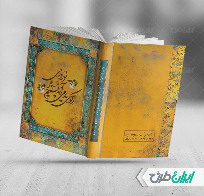 طرح جلد سررسید سال 1404 شامل: حاشیه مذهبی، تذهیب، کادر مذهبی، نقوش اسلیمی، لیبل و شیپ های کاربردی می باشد که توسط طراحان ایران طرح در نرم افزار فتوشاپ طراحی شده است.