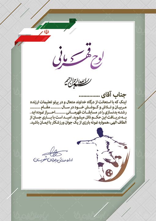 حکم قهرمانی , طرح حکم قهرمانی , حکم قهرمانی لایه باز , دانلود طرح لایه باز حکم قهرمانی , لوح سپاس مسابقات ورزشی , لوح تقدیر , تقدیرنامه , لوح سپاس لوح تقدیر لایه باز , متن لوح سپاس , طرح psd لوح تقدیر , لوح تقدیر لایه باز , سربرگ , سربرگ مذهبی , طرح لوح سپاس لایه باز , تقدیرنامه لایه باز , طرح لوح تقدیر , لوح تقدیر ایرانی , لوح سپاس , تقدیر نامه , پرچم ایران , بک گراند قهوه ای کاشی کاری بافت سنتی , طرح لوح تقدیر psd , فانوس , تصویر فانوس , نارنجک , تصویر نارنجک , تصاویر دوربری شده
