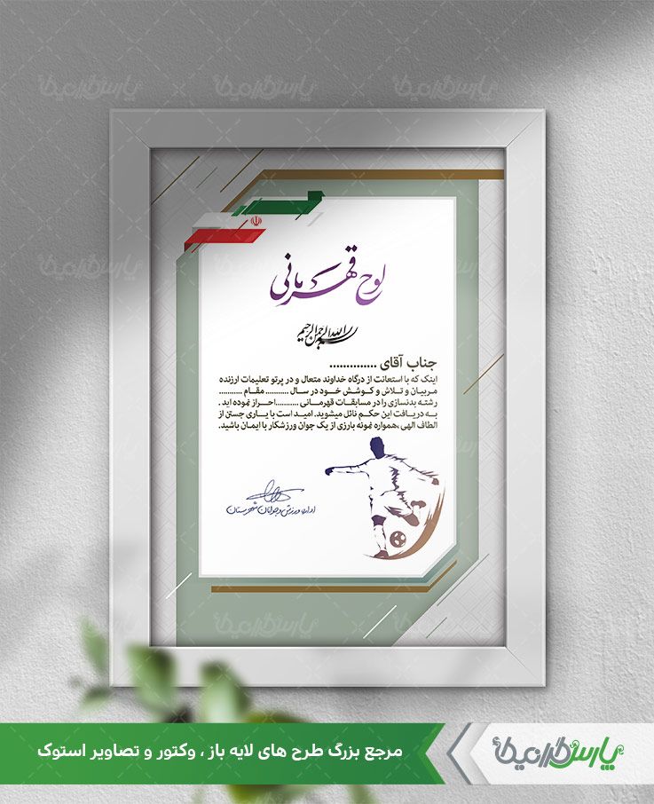 در این طرح از وکتور فوتبالیست استفاده شده است و شما می توانید از این طرح لوح تقدیر براس سایر رشته های ورزشی نیز استفاده نمایید .
